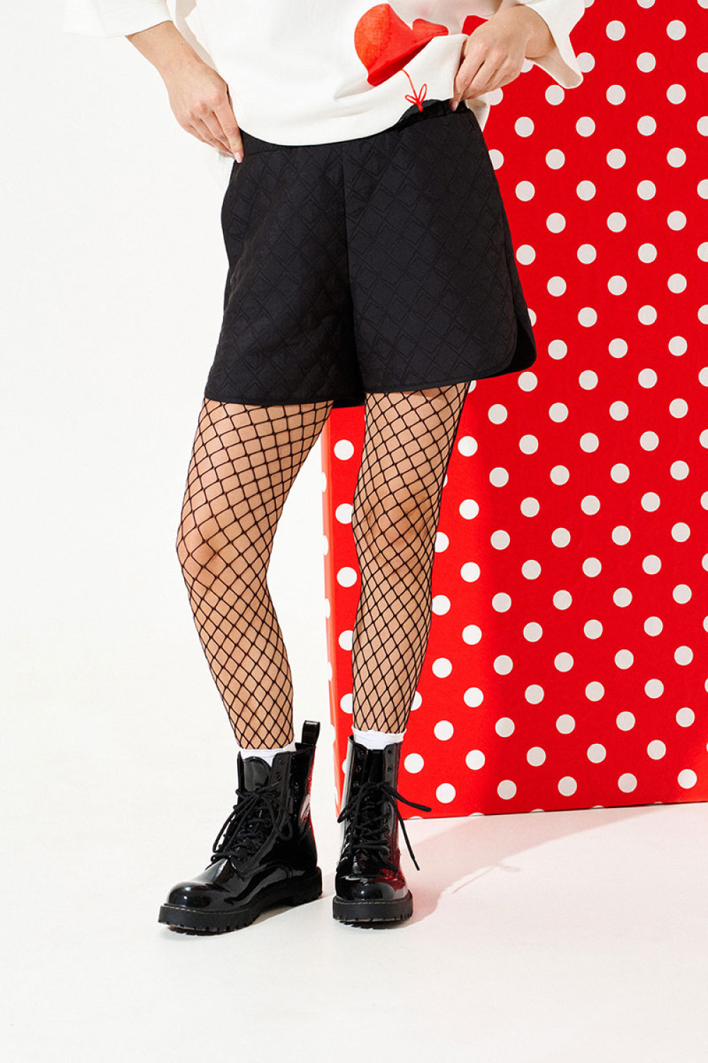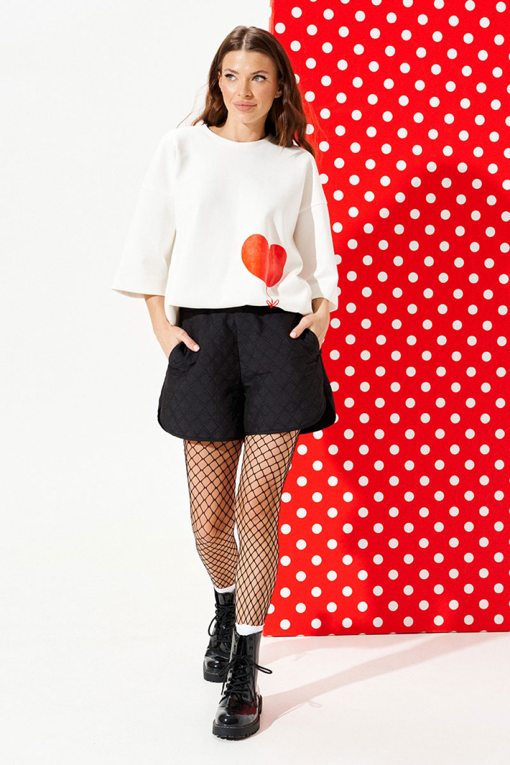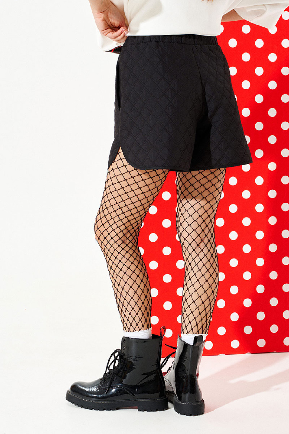 Шорты свободного объема, слегка расширены к низу, с фигурной линией низа. В боковых швах расположены карманы. Пояс притачной на резинке. Нижний срез шорт обработан окантовочной бейкой.
