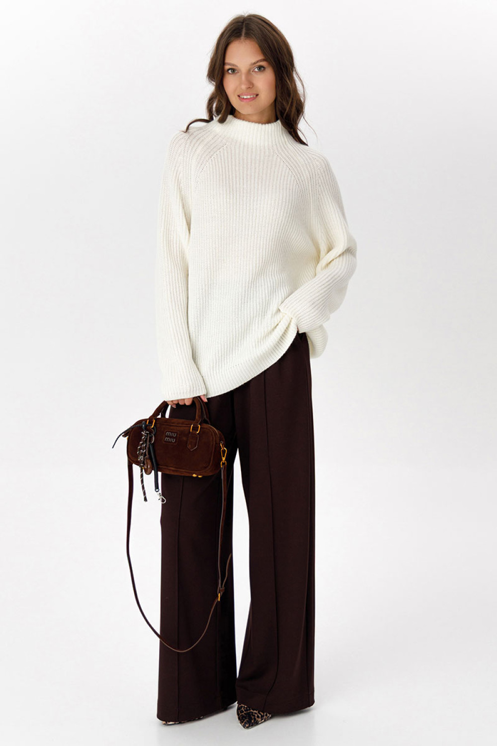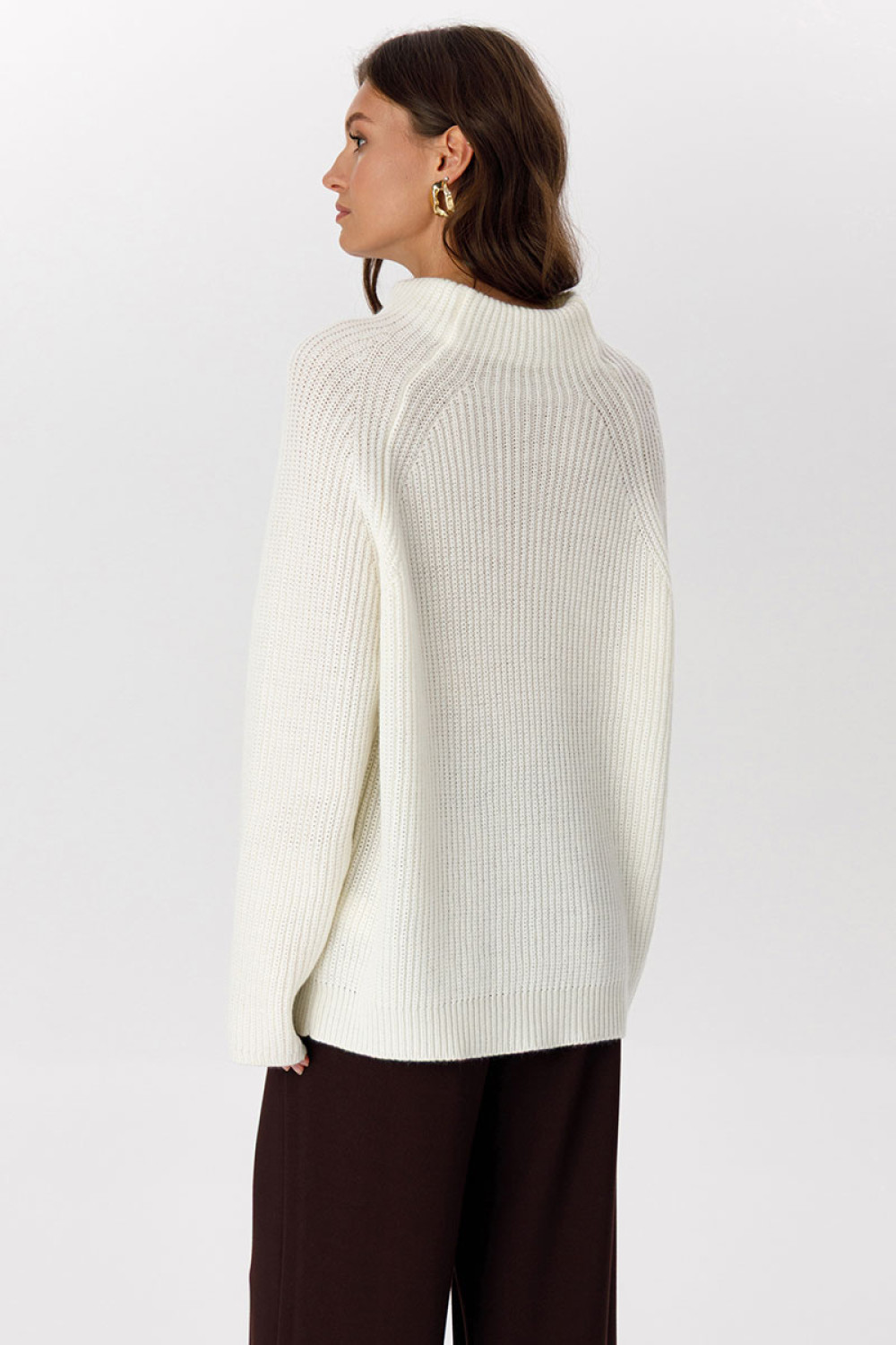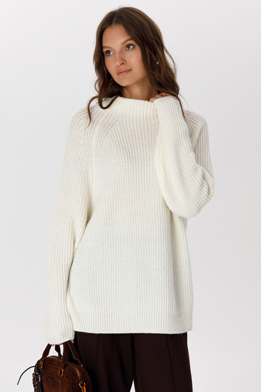 Стильный дизайн: Высокий ворот и классический крой делают джемпер универсальным для создания различных образов — от повседневных до более официальных.