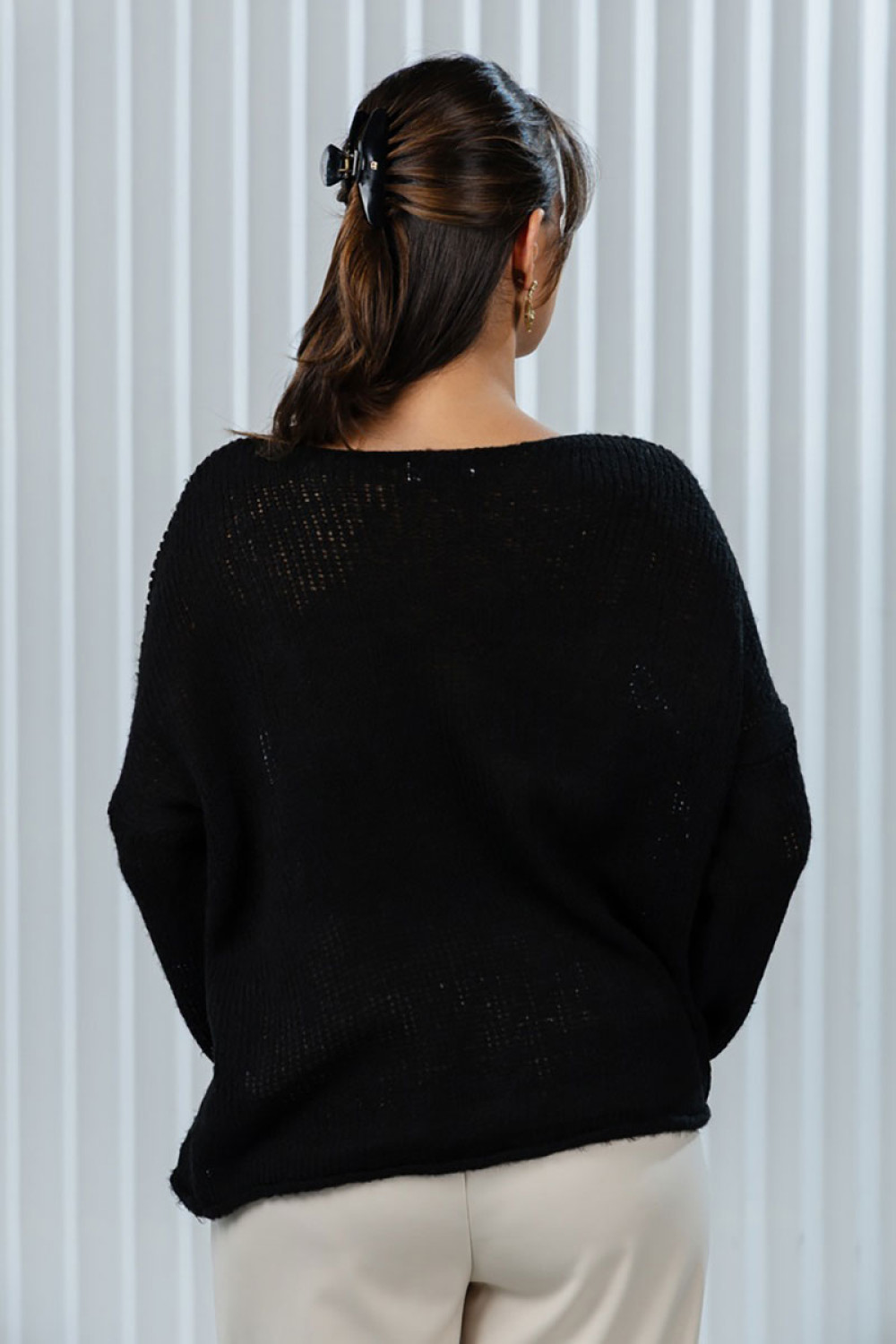 Этот модный черный джемпер станет идеальным выбором для тех, кто ценит комфорт и стиль! Изготовленный из мягкой и приятной на ощупь пряжи, он подарит вам тепло и уют в прохладные дни.