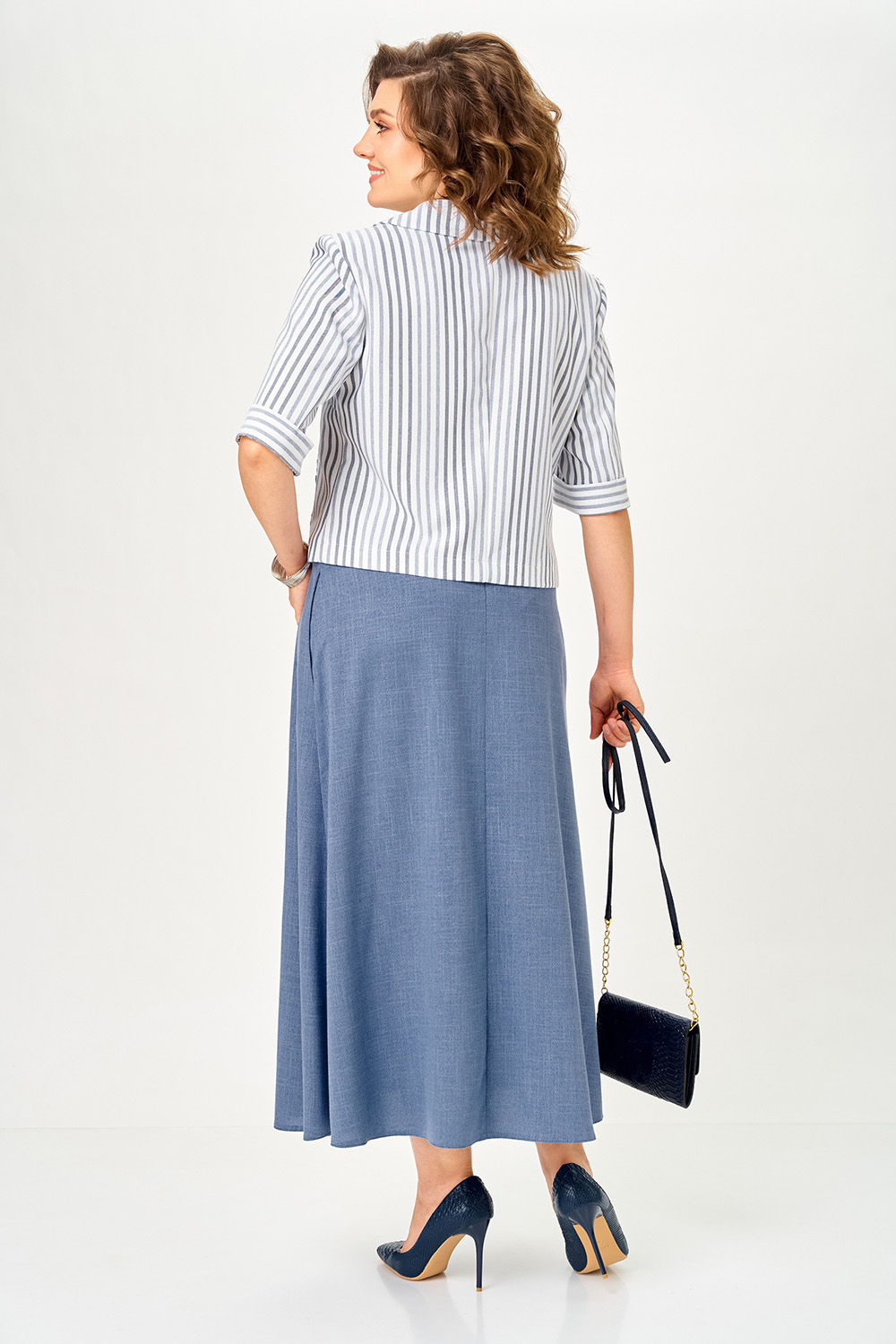 Комплект женский состоит из жакета и юбки. Элегантный женский жакет без подкладки с воротником пиджачного типа и застежкой на 3-и петли и пуговицы. По левой части переда накладные карман с декоративными планками. Рукав втачной двухшовный с манжетой по низу. Юбка А-образного силуэта со складками по переду, в боковых швах карманы. Для максимально комфортной посадки по бокам пояса вставлена эластичная резинка.