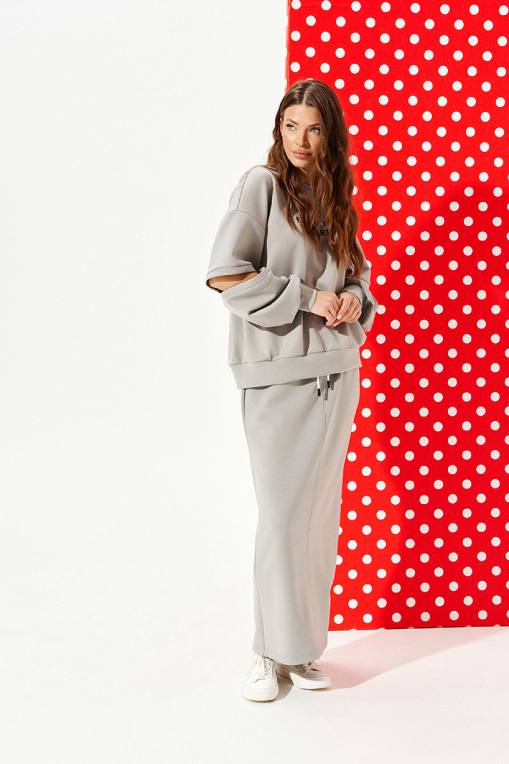 Комплект из трикотажного полотна, 2-предметный, состоящий из свитшота и юбки.