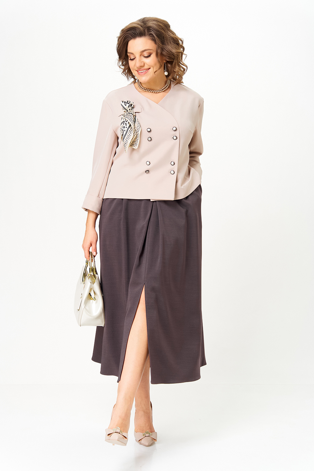 Элегантный женский комплект в сдержанной благородной цветовой гамме сочетает в себе утончённость классики и современную мягкость форм.
