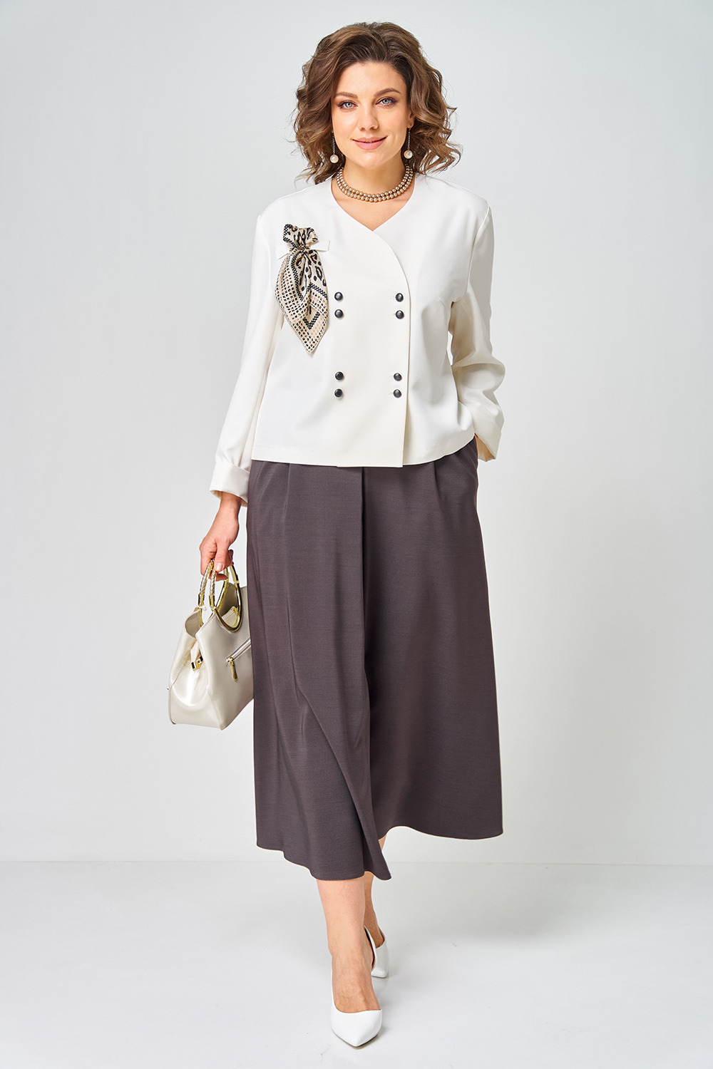 Элегантный женский комплект в сдержанной благородной цветовой гамме сочетает в себе утончённость классики и современную мягкость форм.