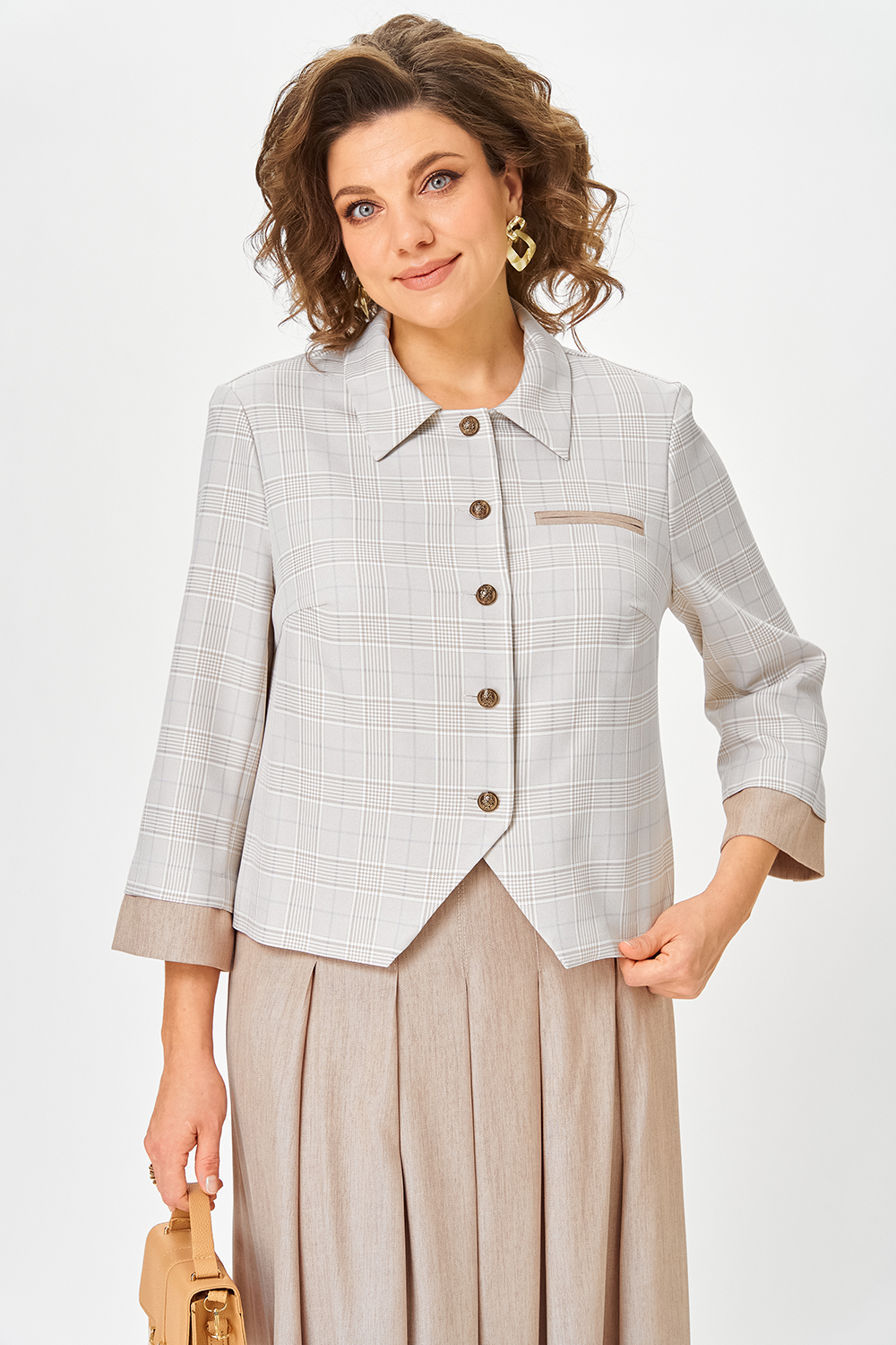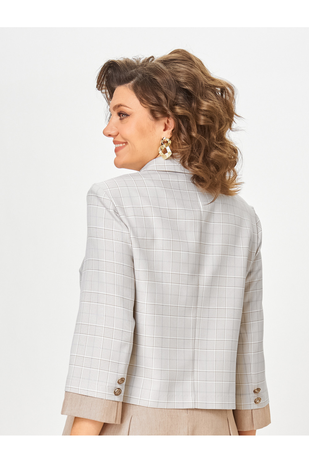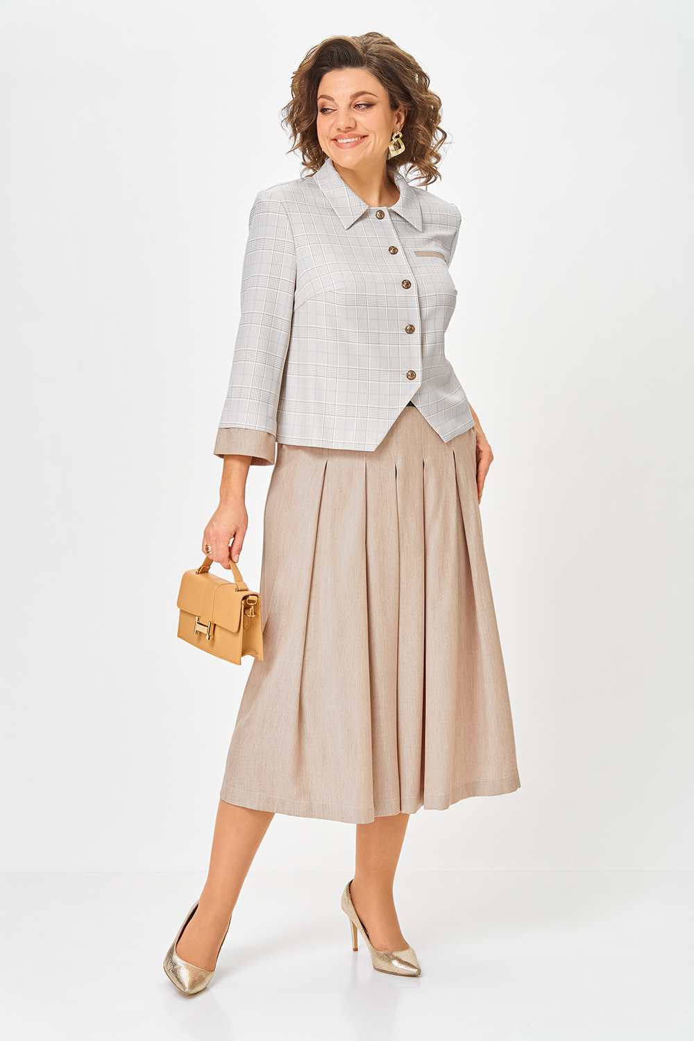 Костюм состоит из жакета в клетку и однотонной юбки.