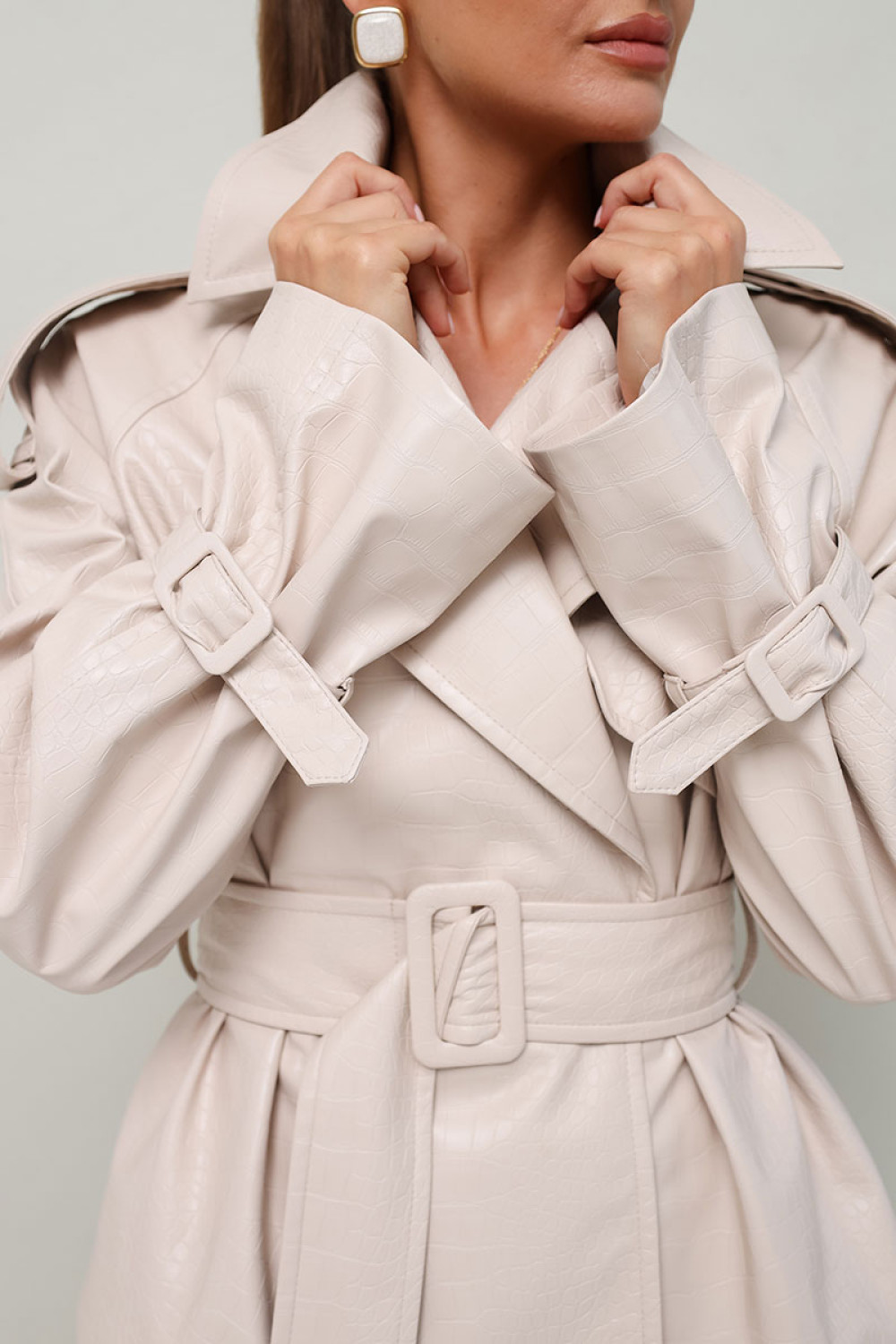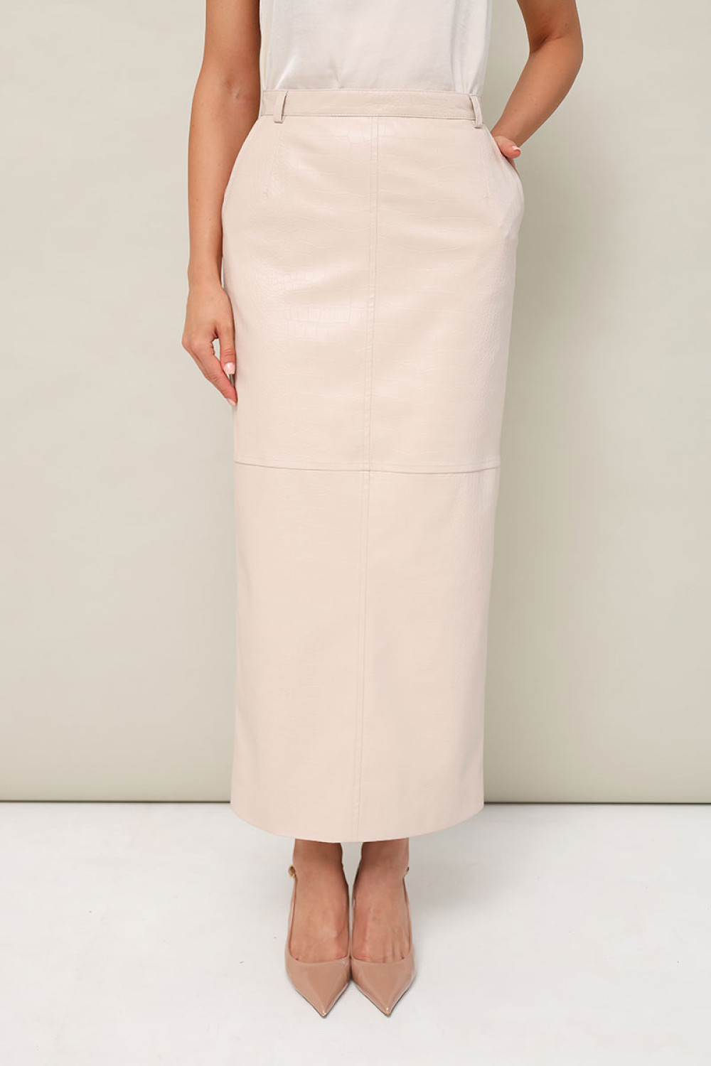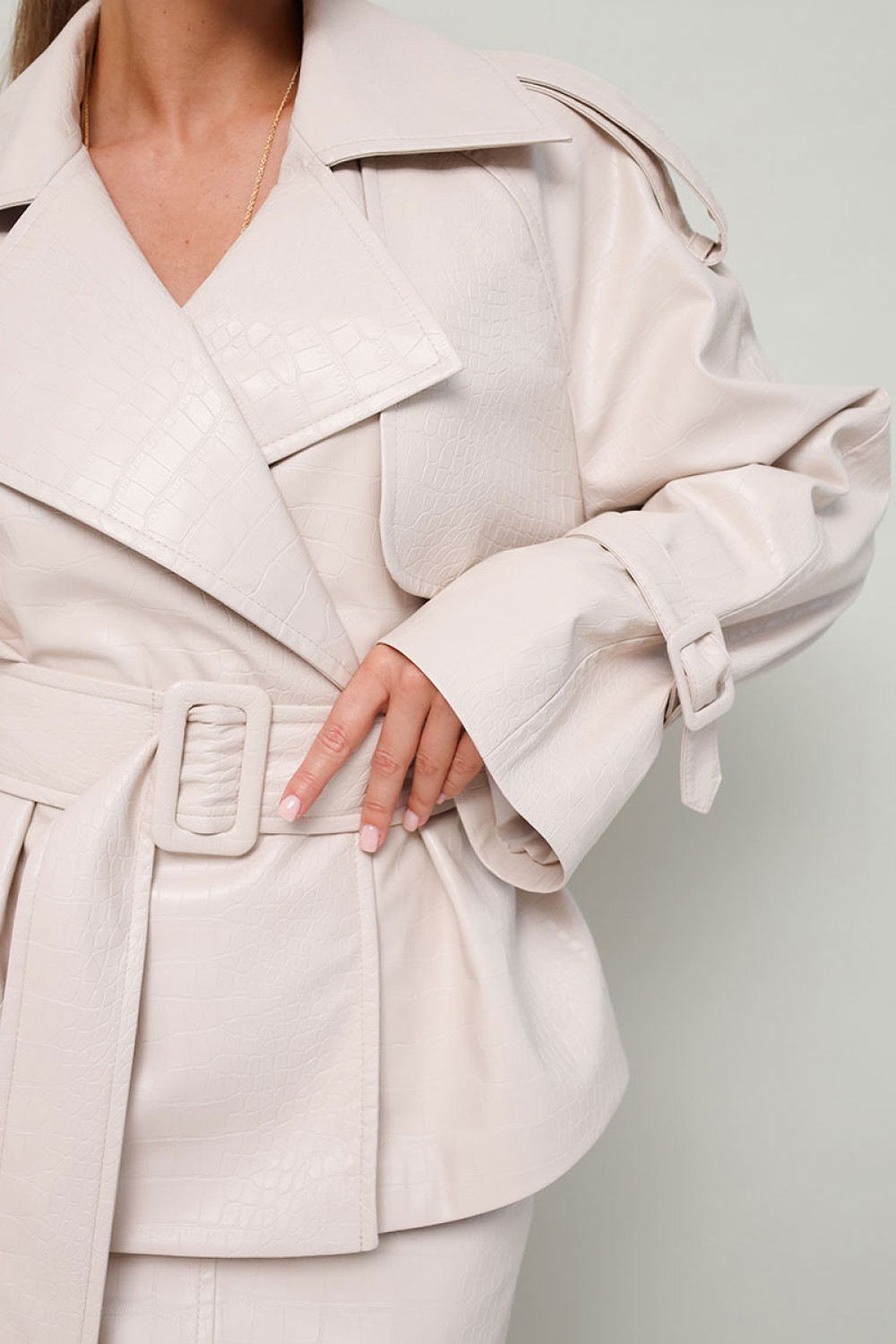 Стильный 2-предметный комплект, состоящий из жакета и юбки, выполненный из экокожи.