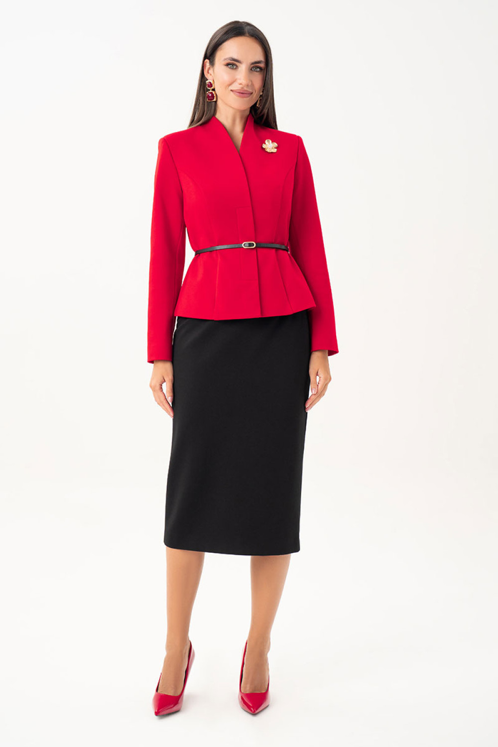 Костюм женский ЮРС, 2-х предметный, состоящий из жакета и юбки, выполнен из трикотажного полотна, со съемным декоративным поясом, нарядный.
