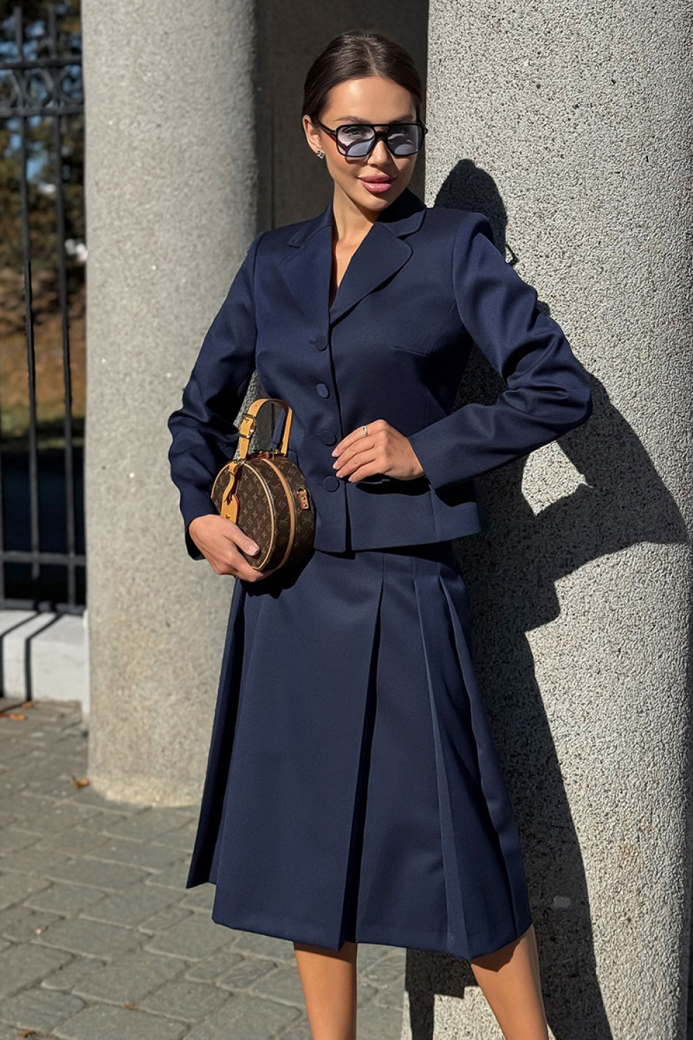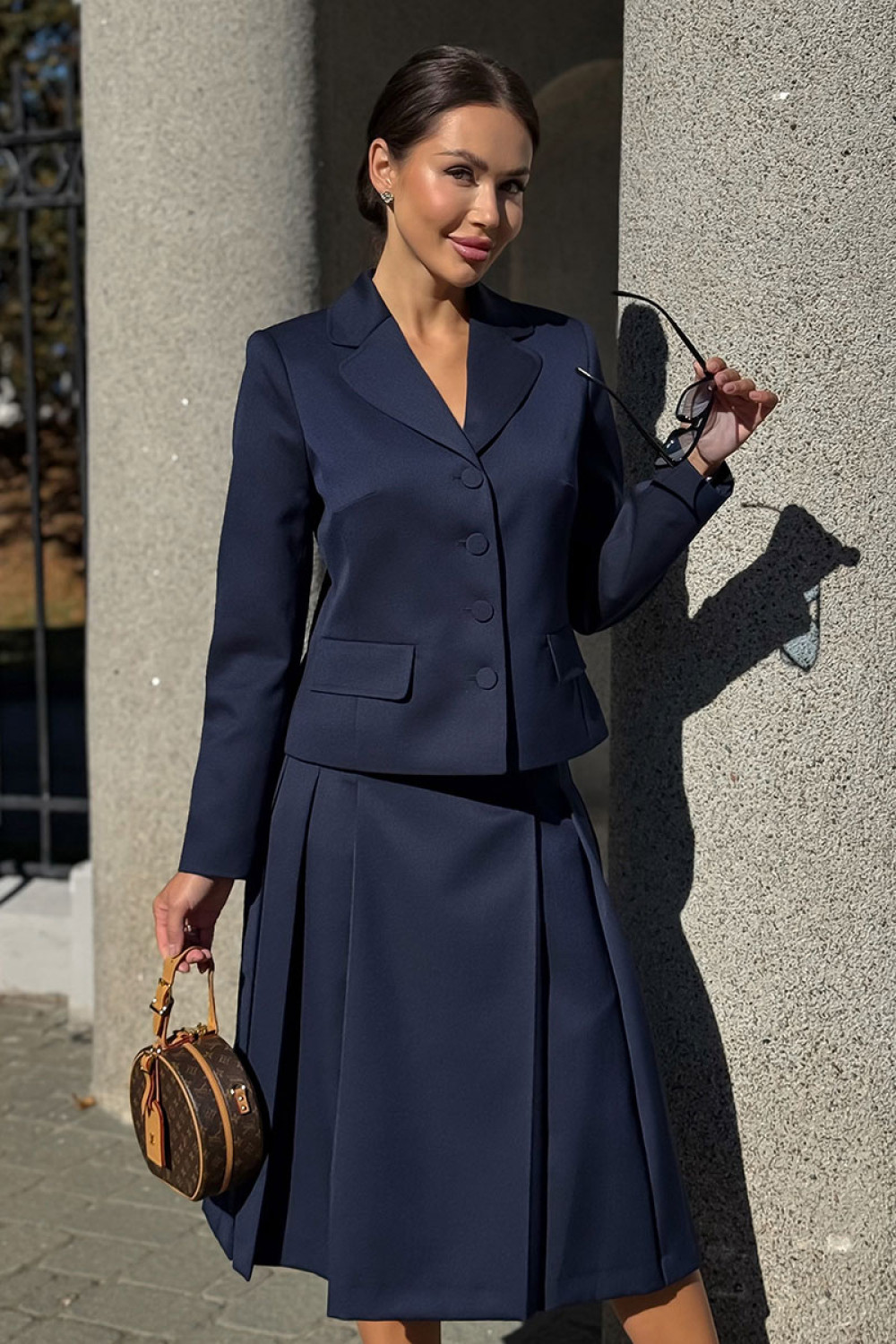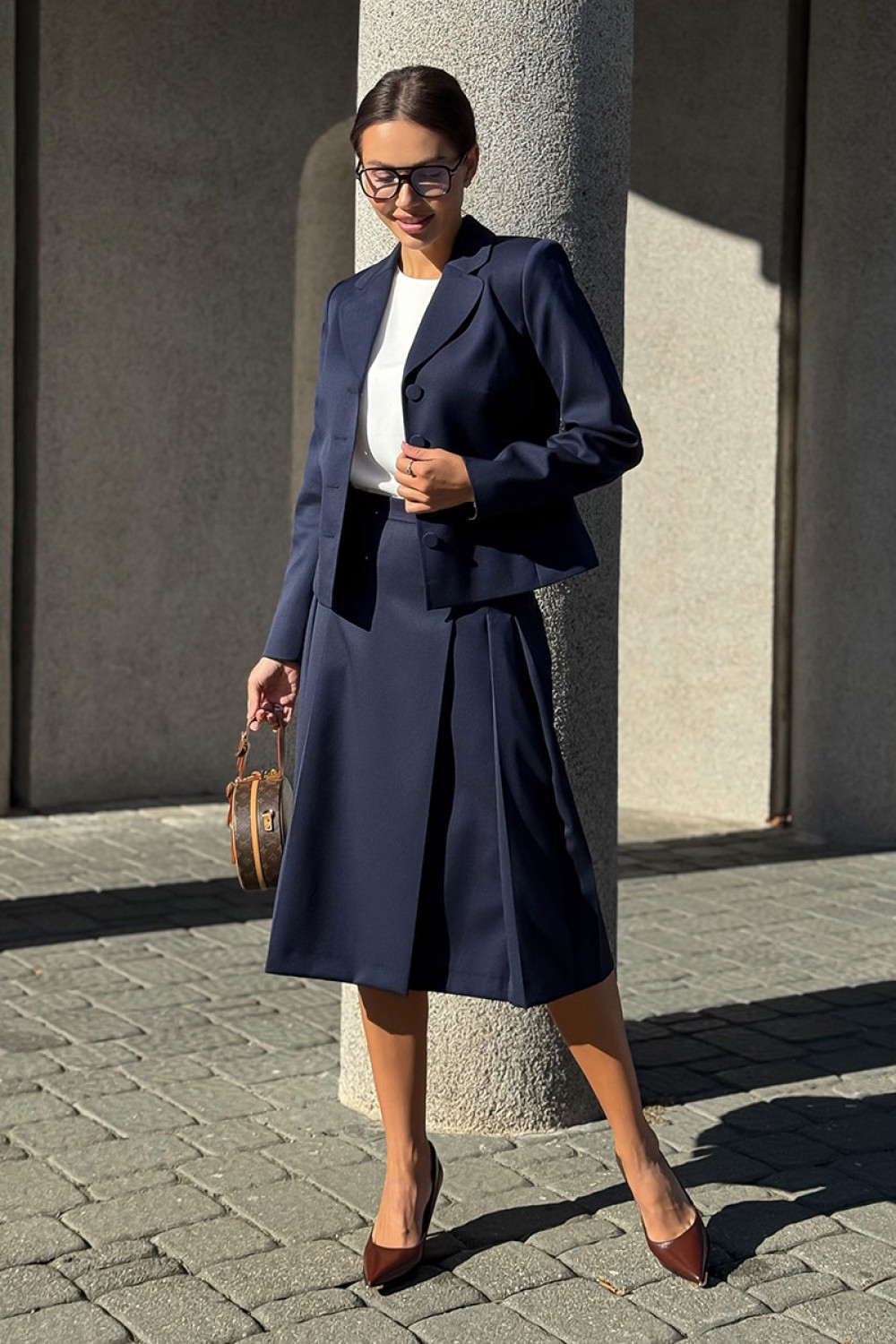 Классический костюм женский с юбкой от URS / ЮРС — безупречный выбор для тех, кто ценит элегантность, строгость и комфорт. Этот деловой костюм состоит из жакета и юбки миди, выполнен из качественной ткани с добавлением шерсти. Костюм женский 2-х предметный, состоящий из жакета и юбки выполненных из костюмно-плательной ткани, предназначен для повседневной носки.