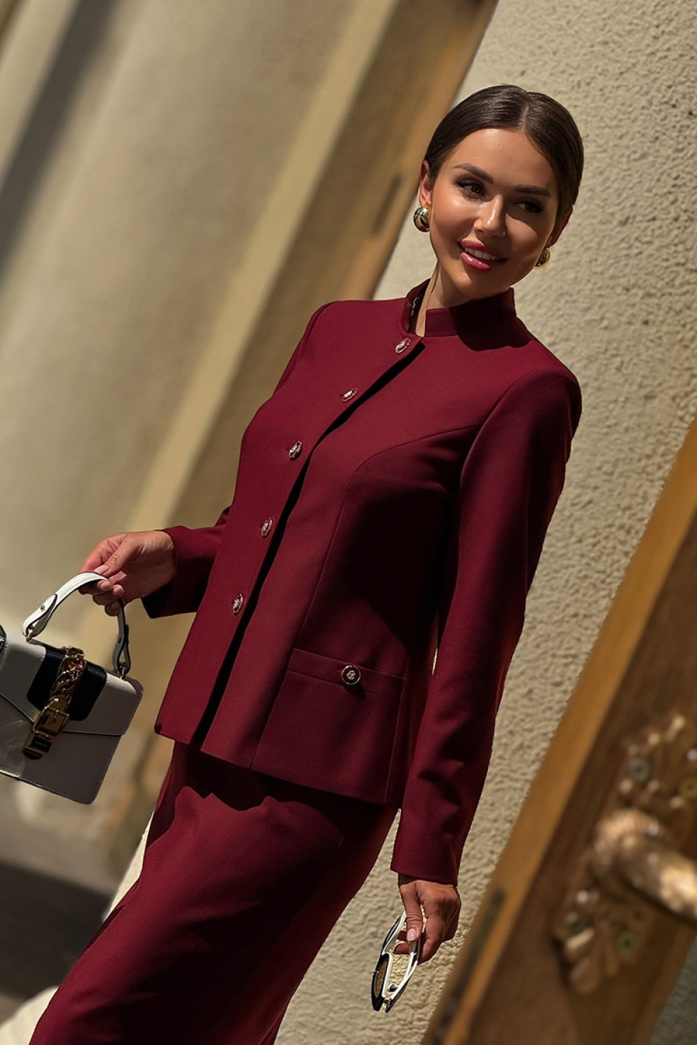 Женский костюм с юбкой бордового цвета от бренда URS – это воплощение элегантности, строгости и изысканности. Такой комплект создан для женщин, которые ценят деловой стиль, предпочитают классику и хотят оставаться безупречными в любой ситуации – будь то офис, деловые переговоры, официальные встречи или торжественные мероприятия. Костюм женский, состоящий из жакета и юбки, выполненный из костюмной ткани, предназначен для повседневной носки.
