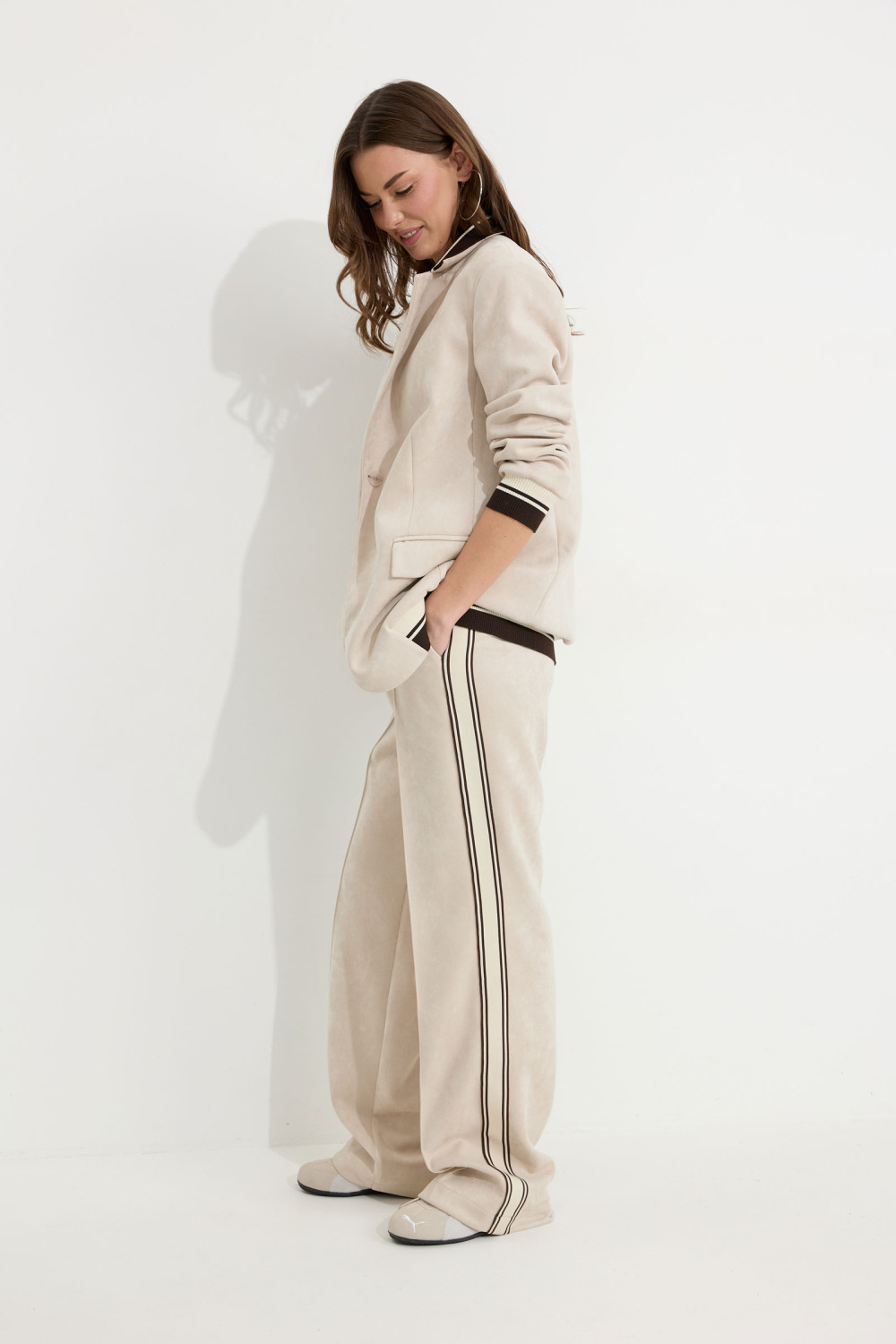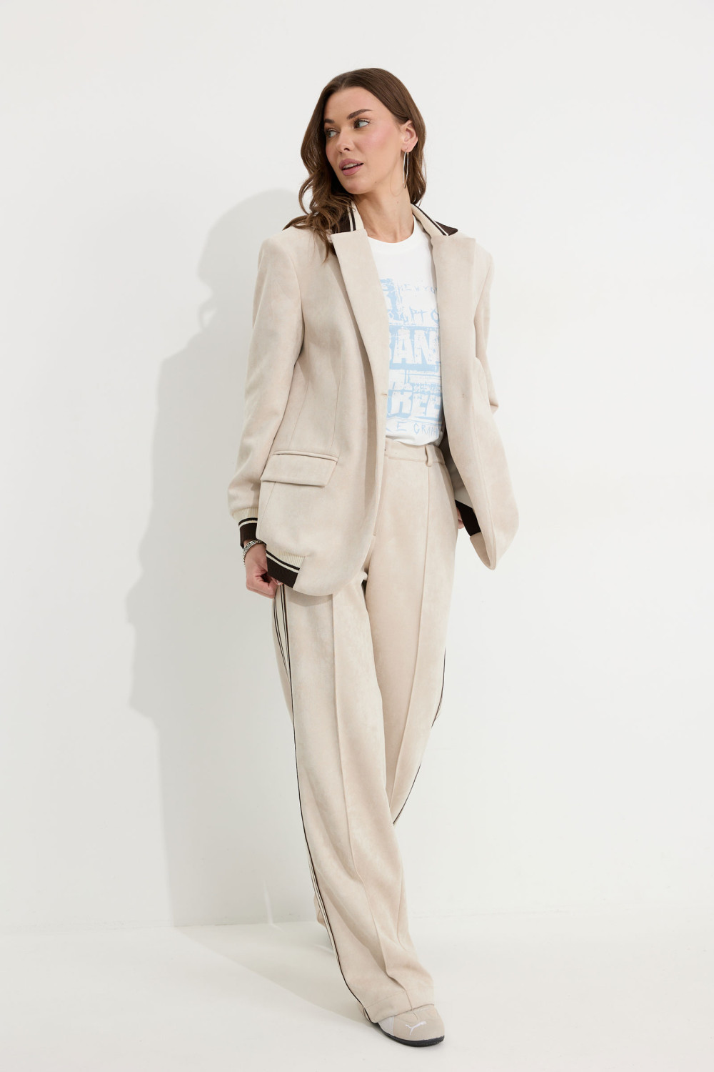 Костюм, состоящий из жакета и брюк.