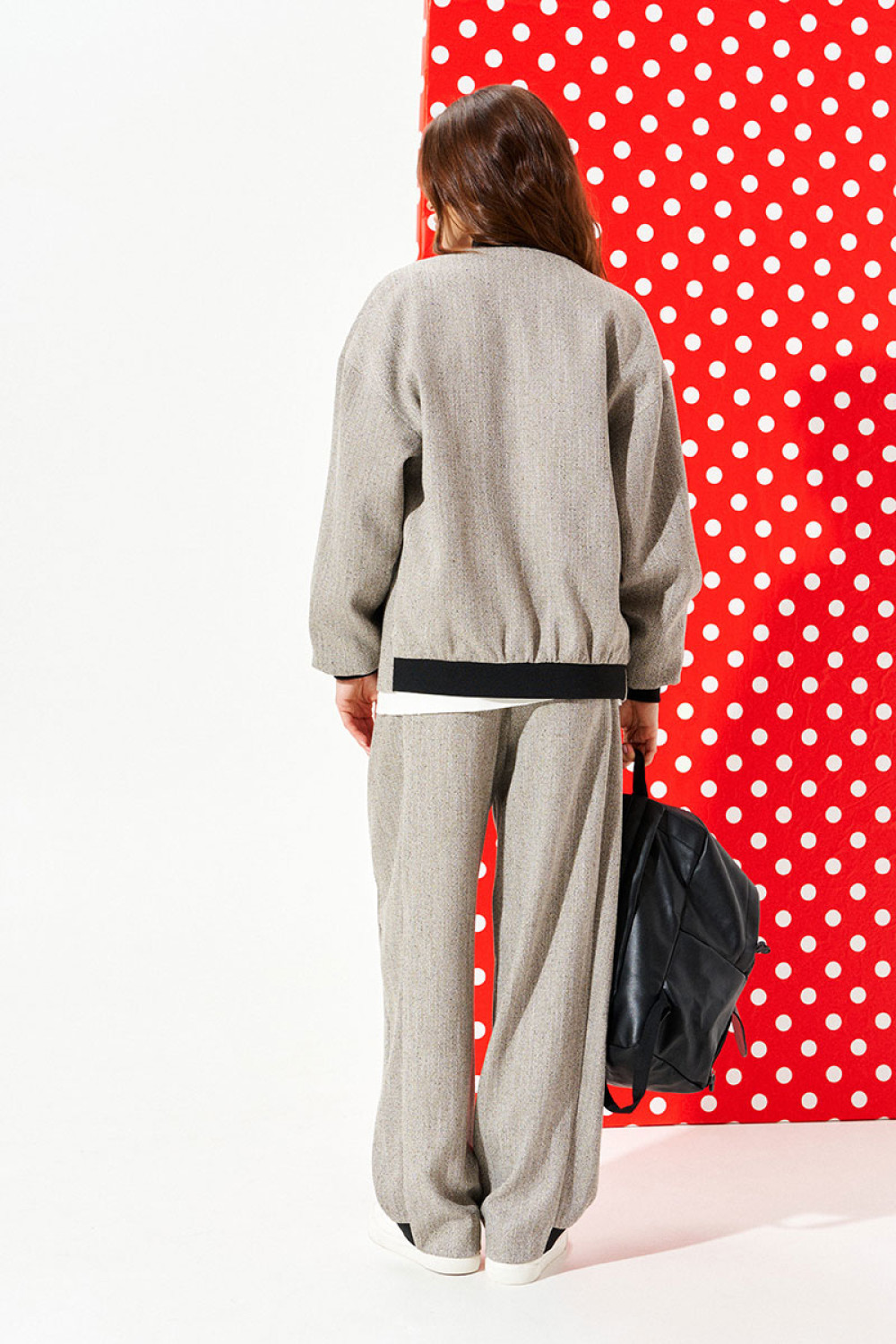 Комплект из костюмной ткани, 2-предметный, состоящий из бомбера и брюк.