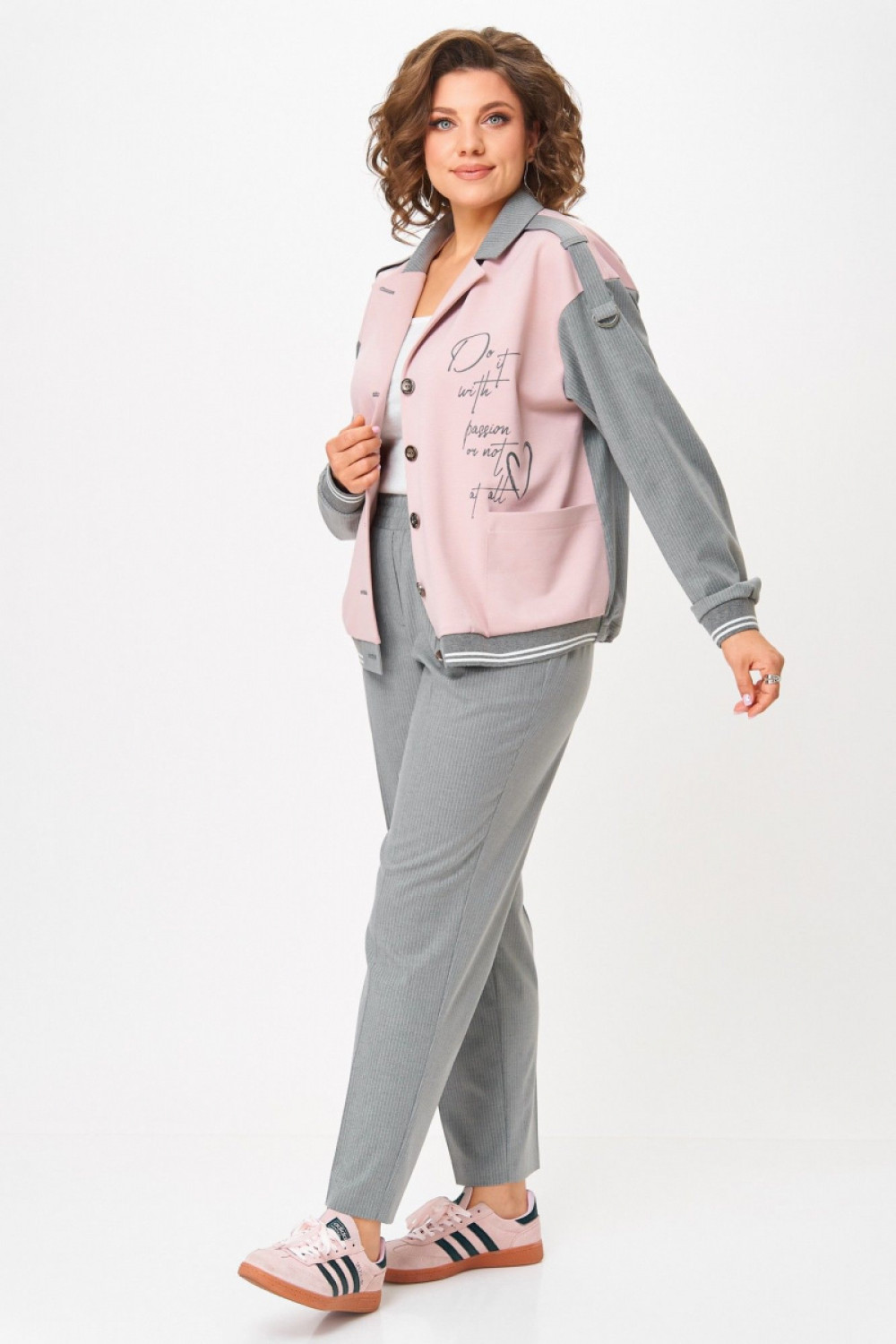 Костюм в стиле спорт-шик сочетающий в себе женственность и комфорт. Сочетание двух тканей трикотажного полотна и костюмной ткани добавляет оригинальность.
