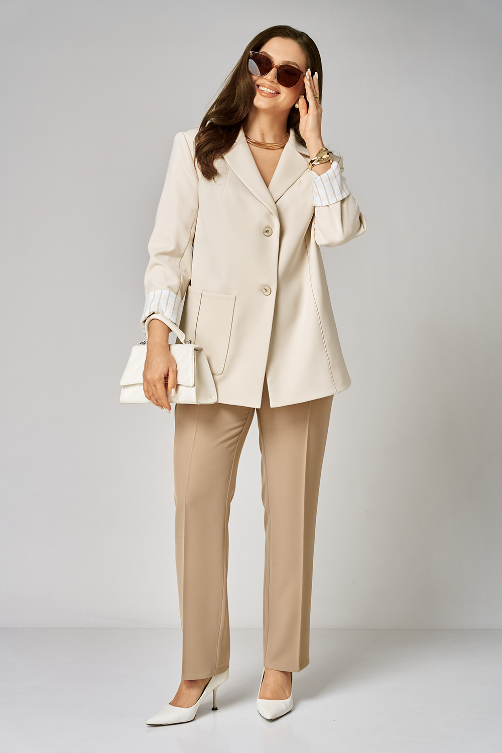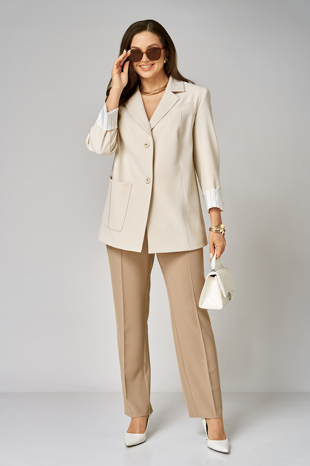 Универсальный костюм: жакет, брюки. Выполнен в стиле нео классики.