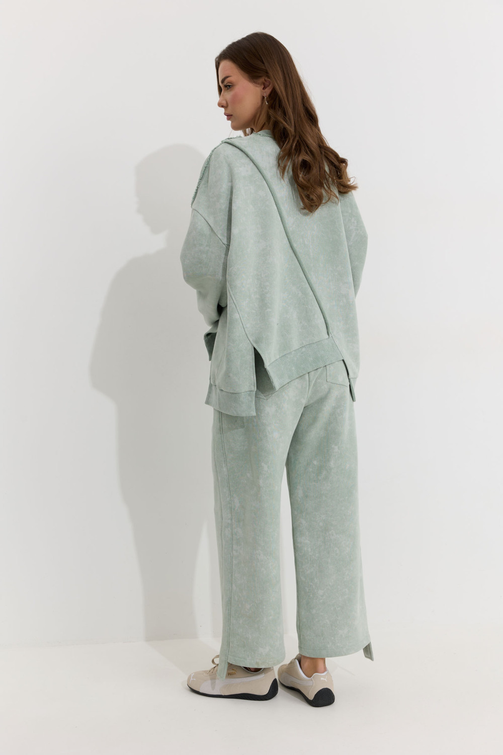 Брюки прямого силуэта из трикотажного полотна. По верху брюк притачной пояс. По боковым швам лампасы. По задним половинкам брюк карманы. Обращаем ваше внимание, что фурнитура может отличаться от фото.Подходит на рост 164-170 см.