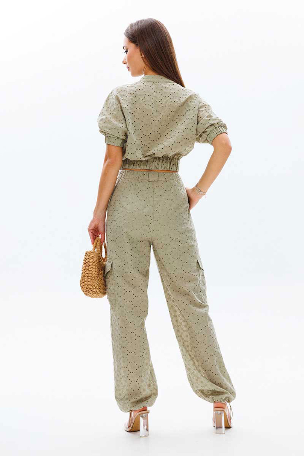 Брюки (подкладка в виде шорт) классической посадки,с накладными карманами и клапаном на боковых швах. По линии талии резинка. Застёжка на тесьму молния. По низу эластичная тесьма с фиксатором.