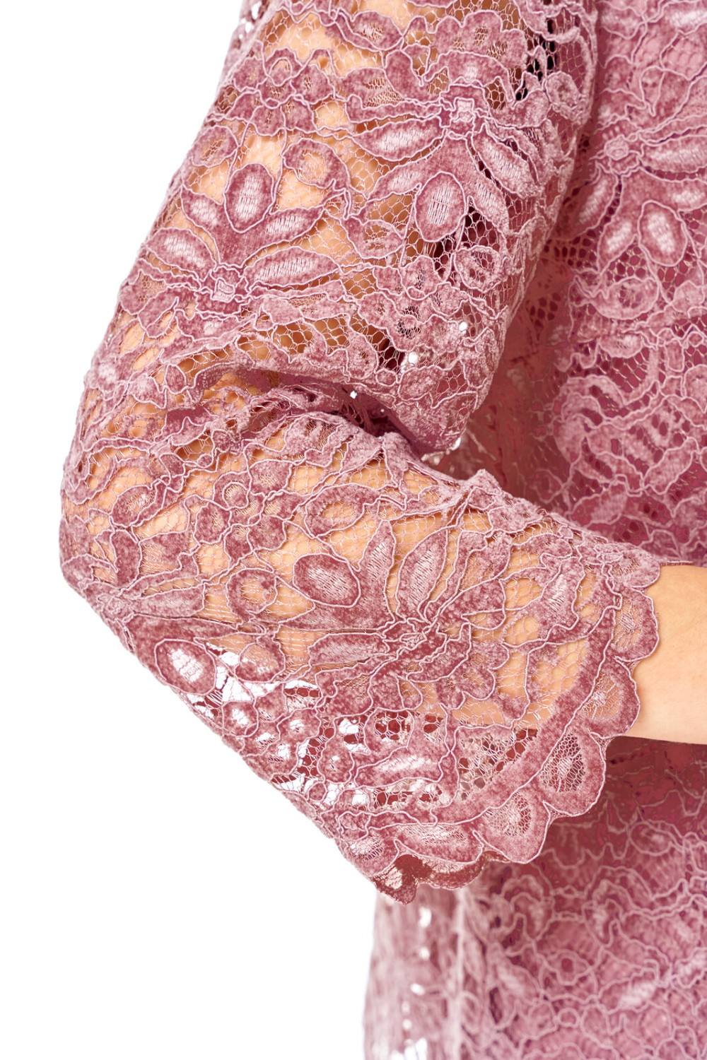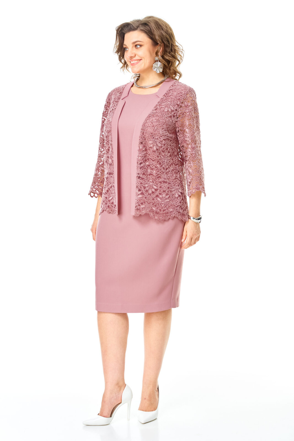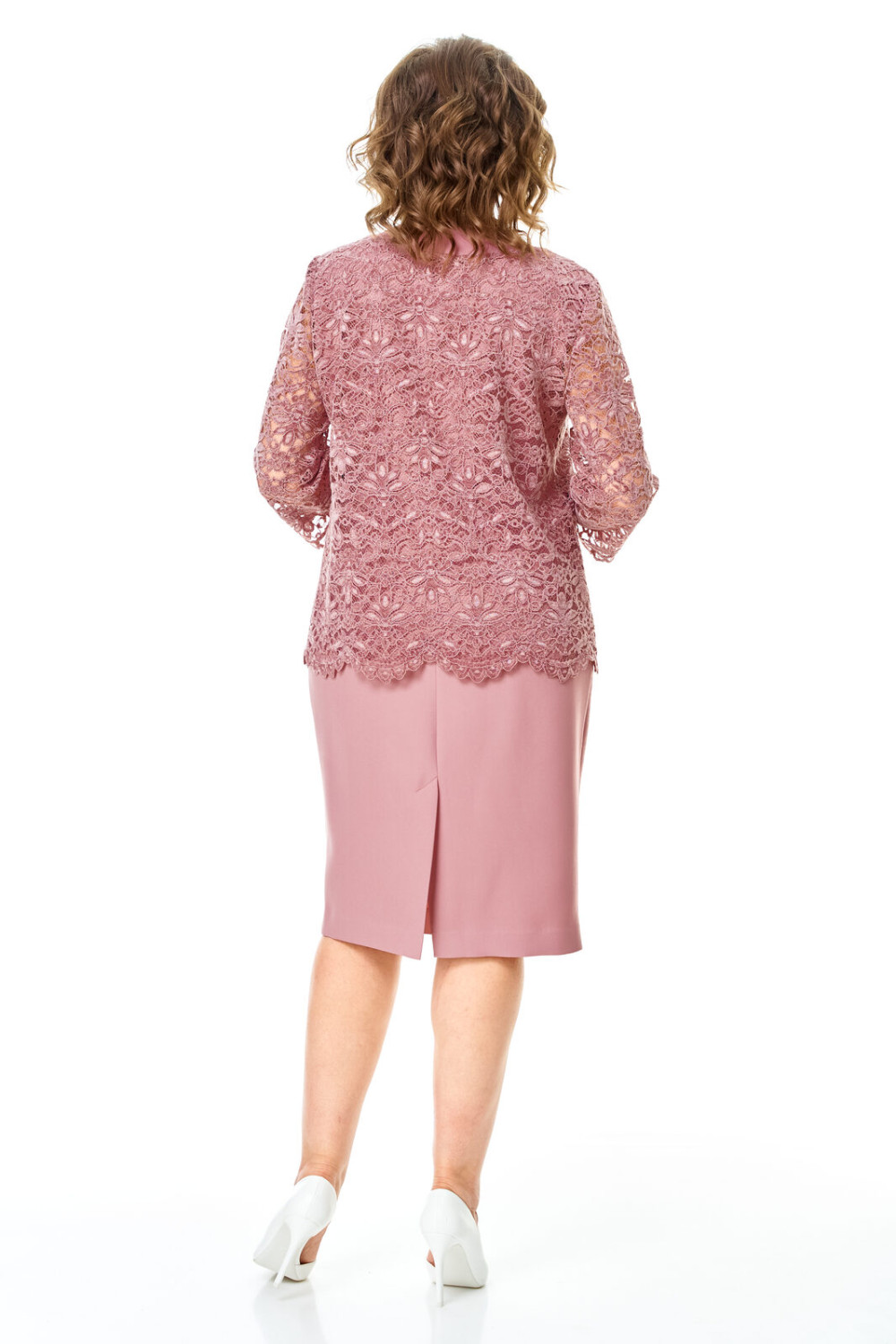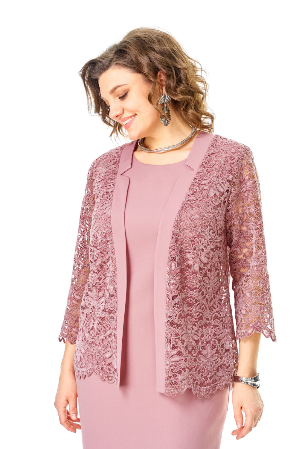 Кардиган свободного покроя с естественной линией плеча выполнен из кружевного полотна premium качества. Рукав втачной одношовный длиной 3/4.Перед с нагрудными вытачками. Обработаны отрезные планки с имитацией пиджачного воротника. Комплект подойдет на любое торжество.