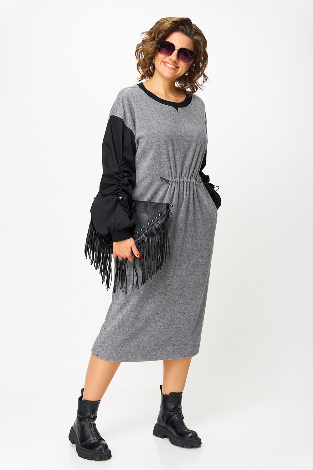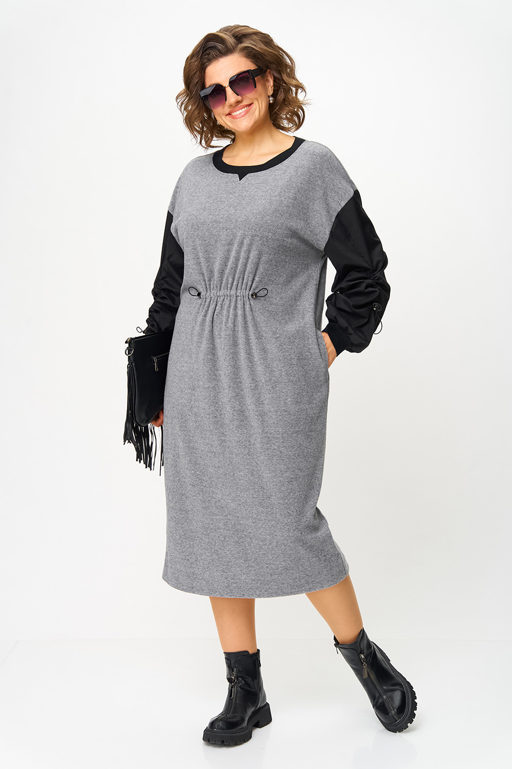 Платье женское, выполнено из комбинации трикотажного полотна и рубашечной ткани.