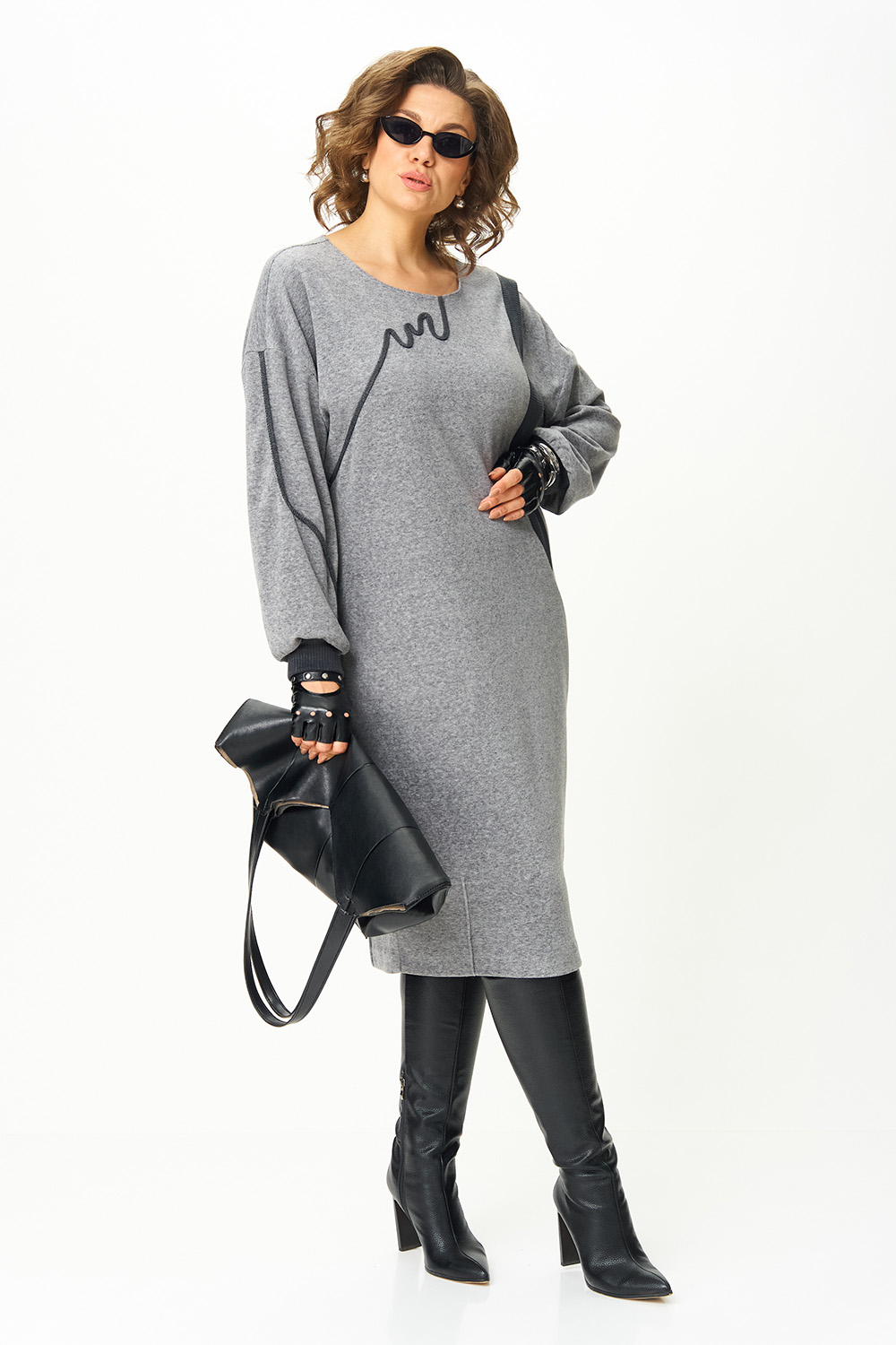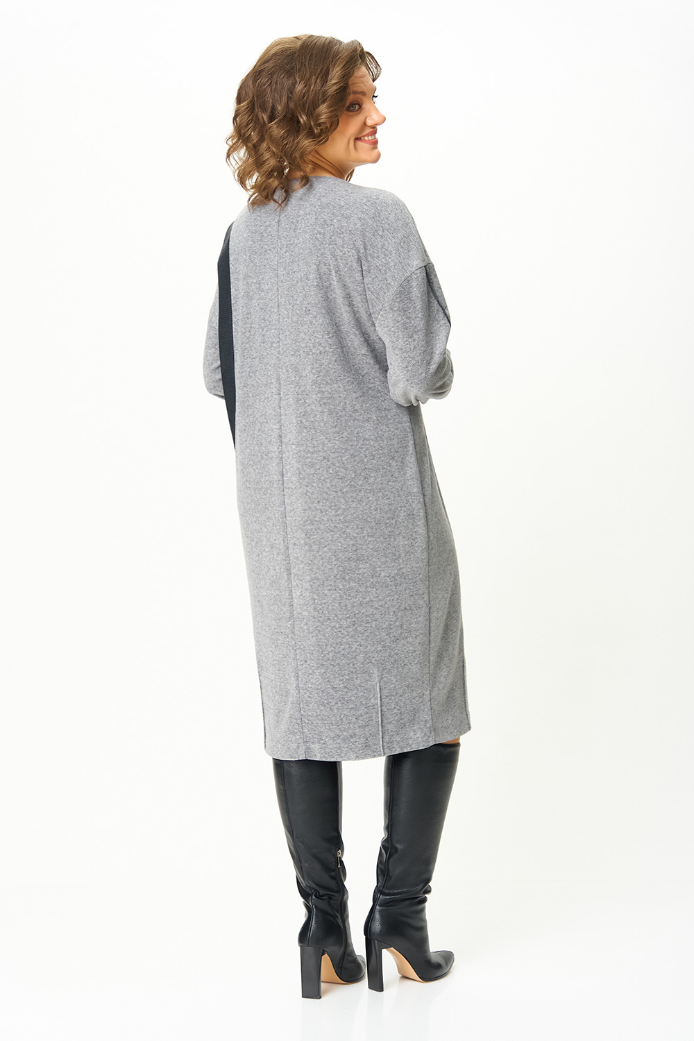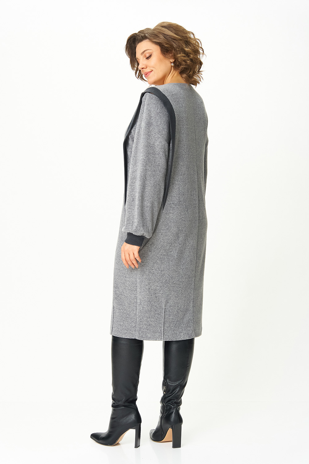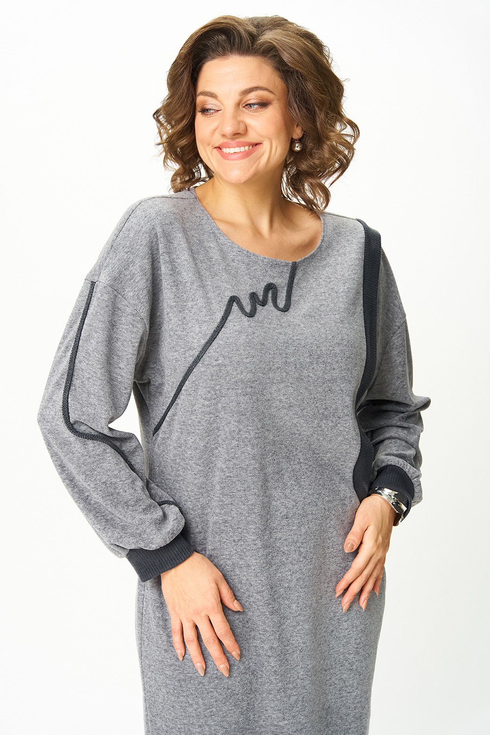 Платье трикотажное, прямое слегка зауженное к низу. Рукав втачной с манжетой. По переду прорезные карманы и отделка декоративным шнуром.
