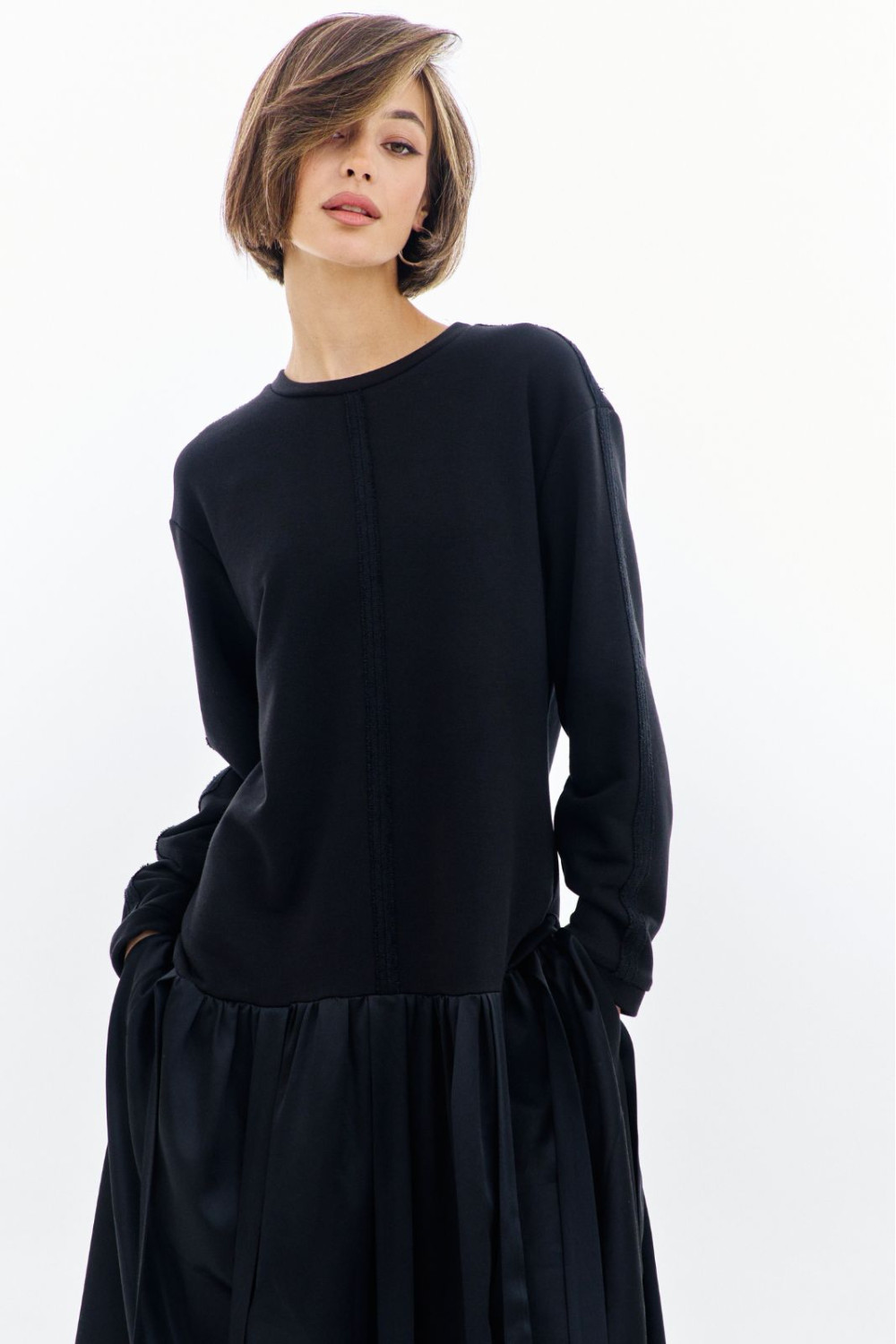 - верхняя часть платья из футера с открытыми швами