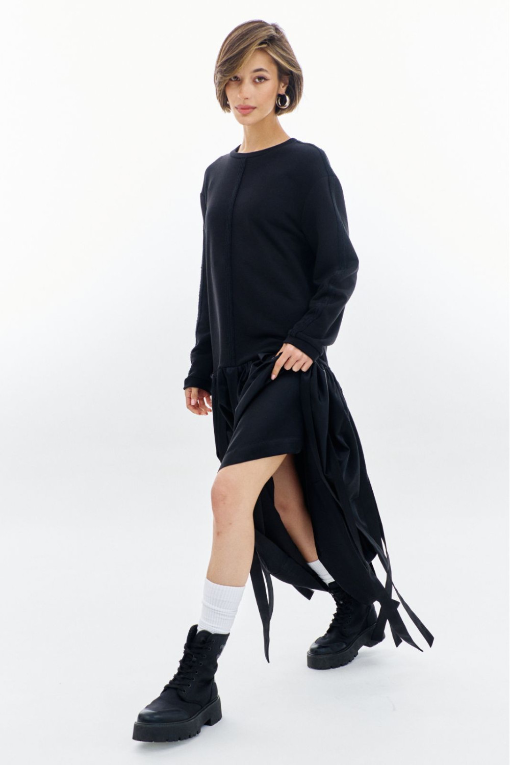 - юбка платья со сборкой и декоративными лентами