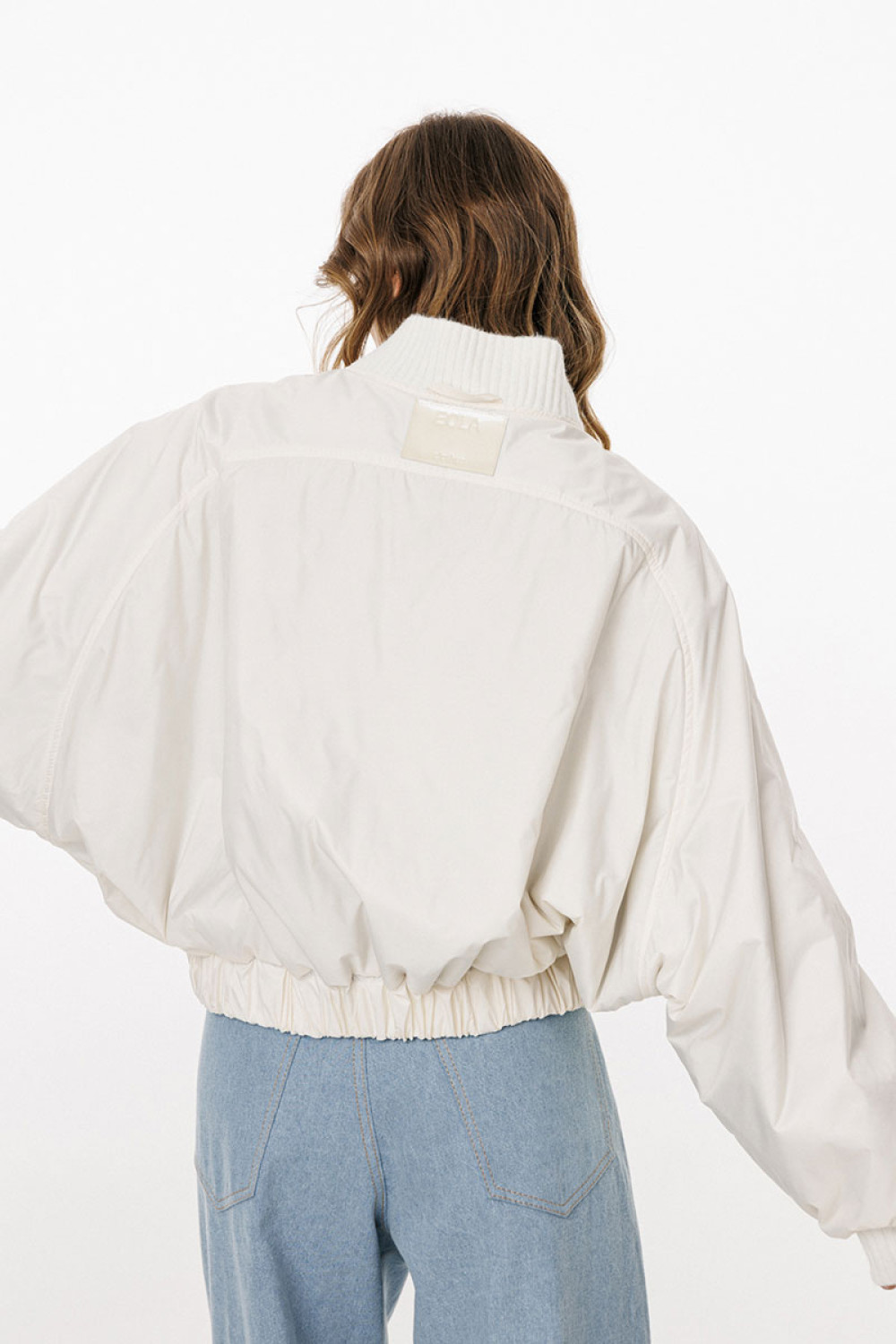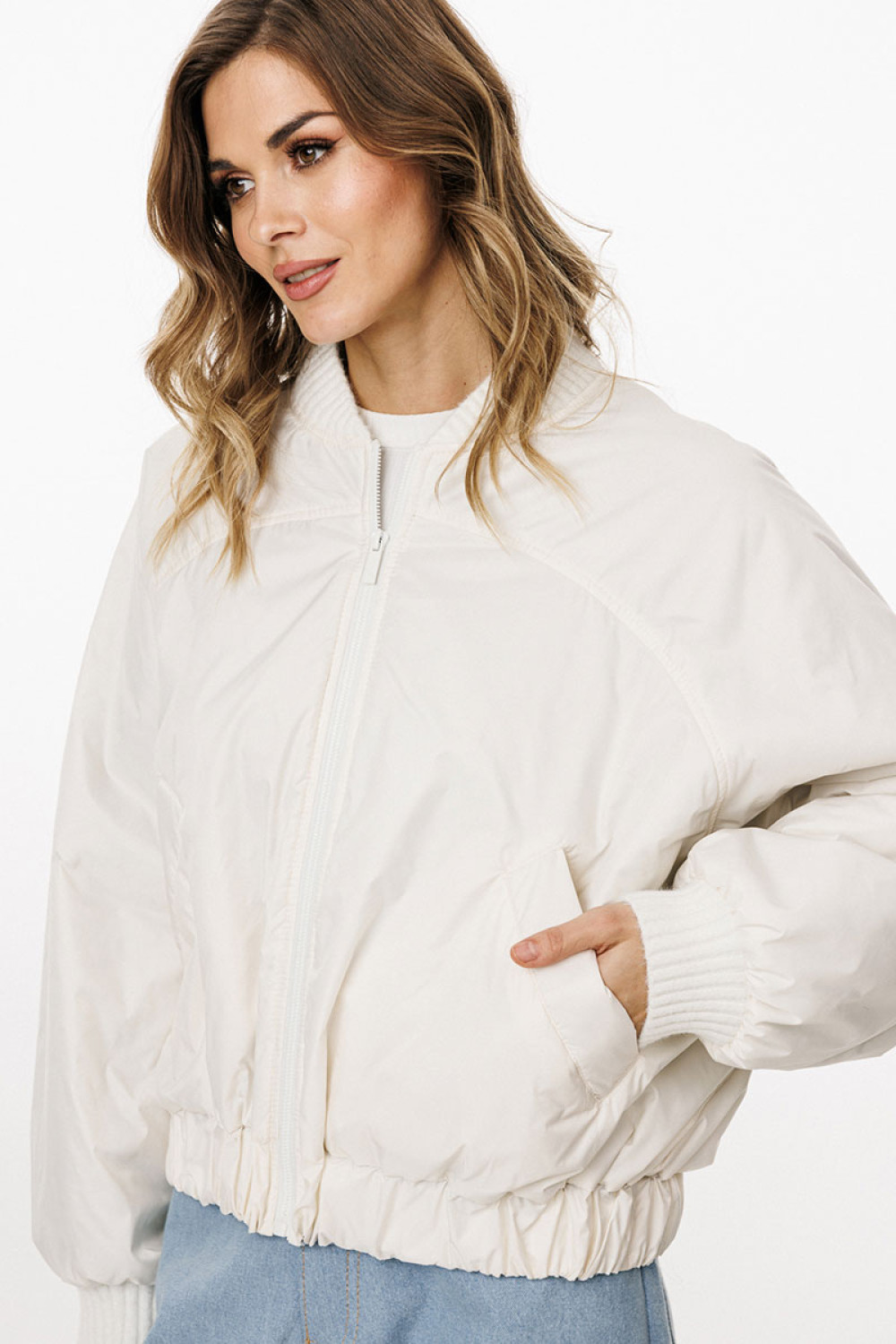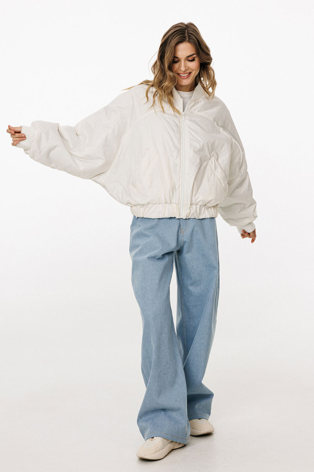 Куртка выполнена из плащевой ткани с утеплителем Isosoft. Куртка О-образного силуэта, длиной выше линии бедер. Куртка двусторонняя. Спереди застежка на молнию и карманы. Рукав покроя кимоно переходящий в кокетки спереди и по спинке. Низ рукава на притачной манжете из трикотажного довяза. Горловина округлой формы с вортником-стойкой из трикотажного довяза. Низ куртки на притачном поясе с эластичной тесьмой внутри. Одна из сторон куртки декорирована на спинке нашивкой из натуральной кожи.