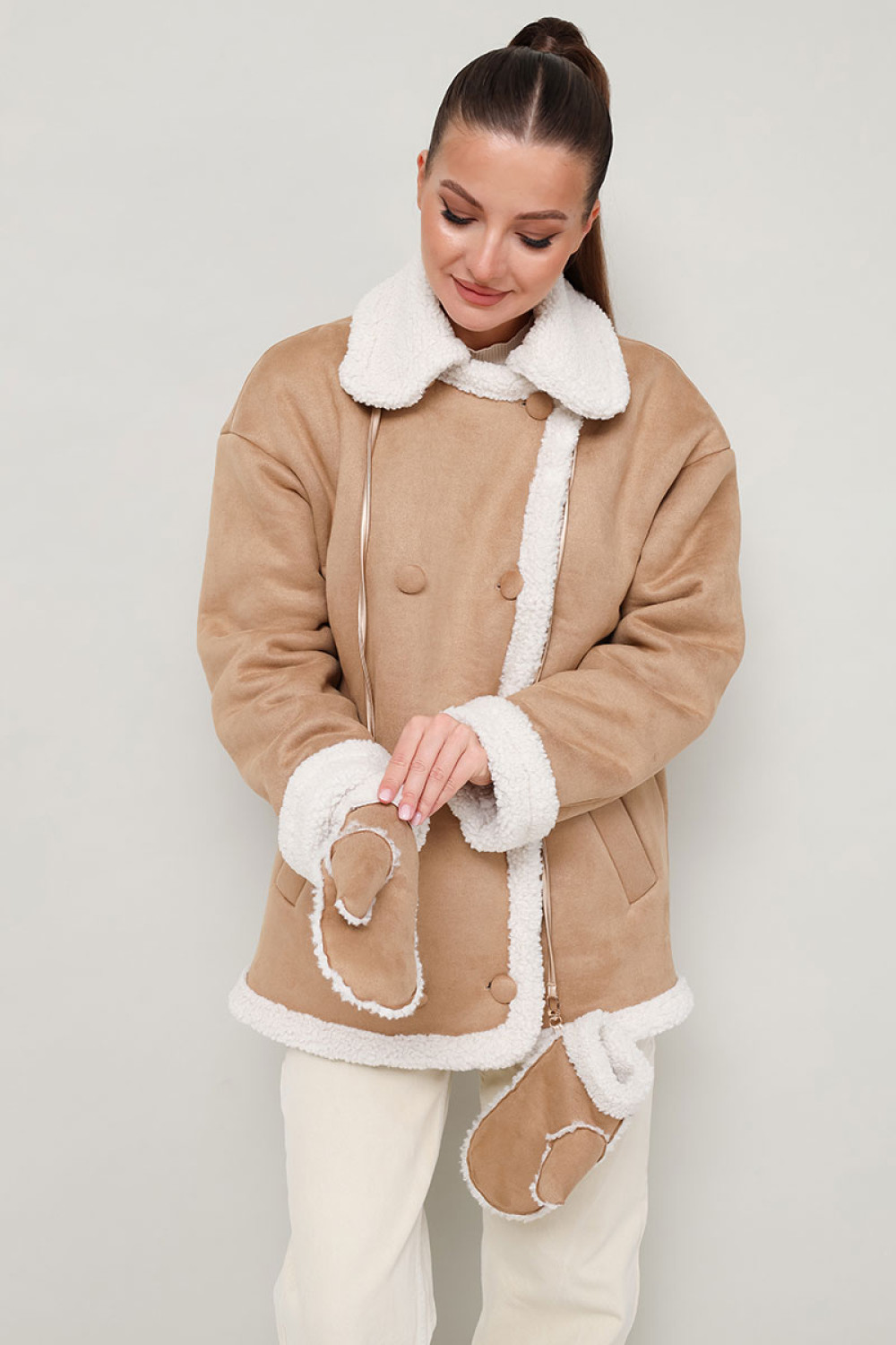 Дубленка декорирована искусственным мехом, который придает образу благородную мягкость и уют.Рукавицы из искусственного меха с отложными манжетами. Стильный и акцентный аксессуар, который гармонично дополнит образ с дубленкой. В комплекте шнур с креплением на карабин.ПЭ 96%, эластан 4%