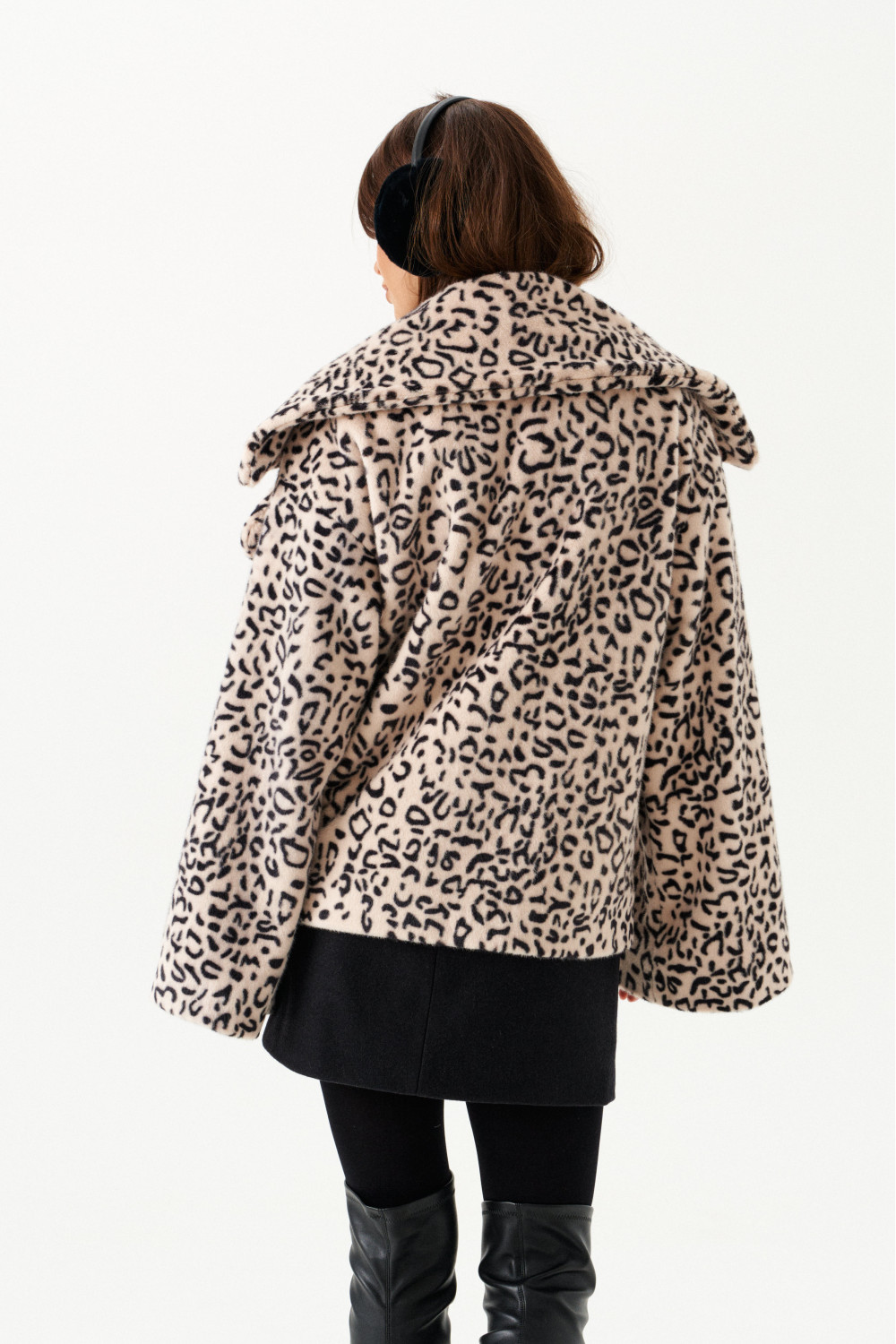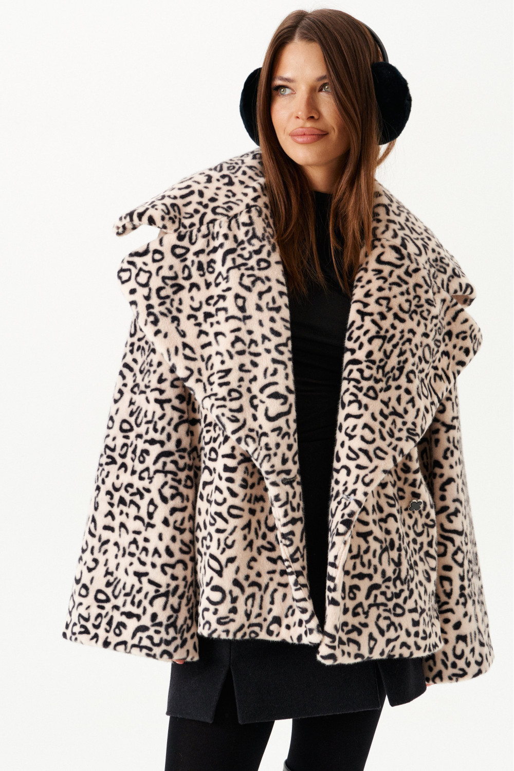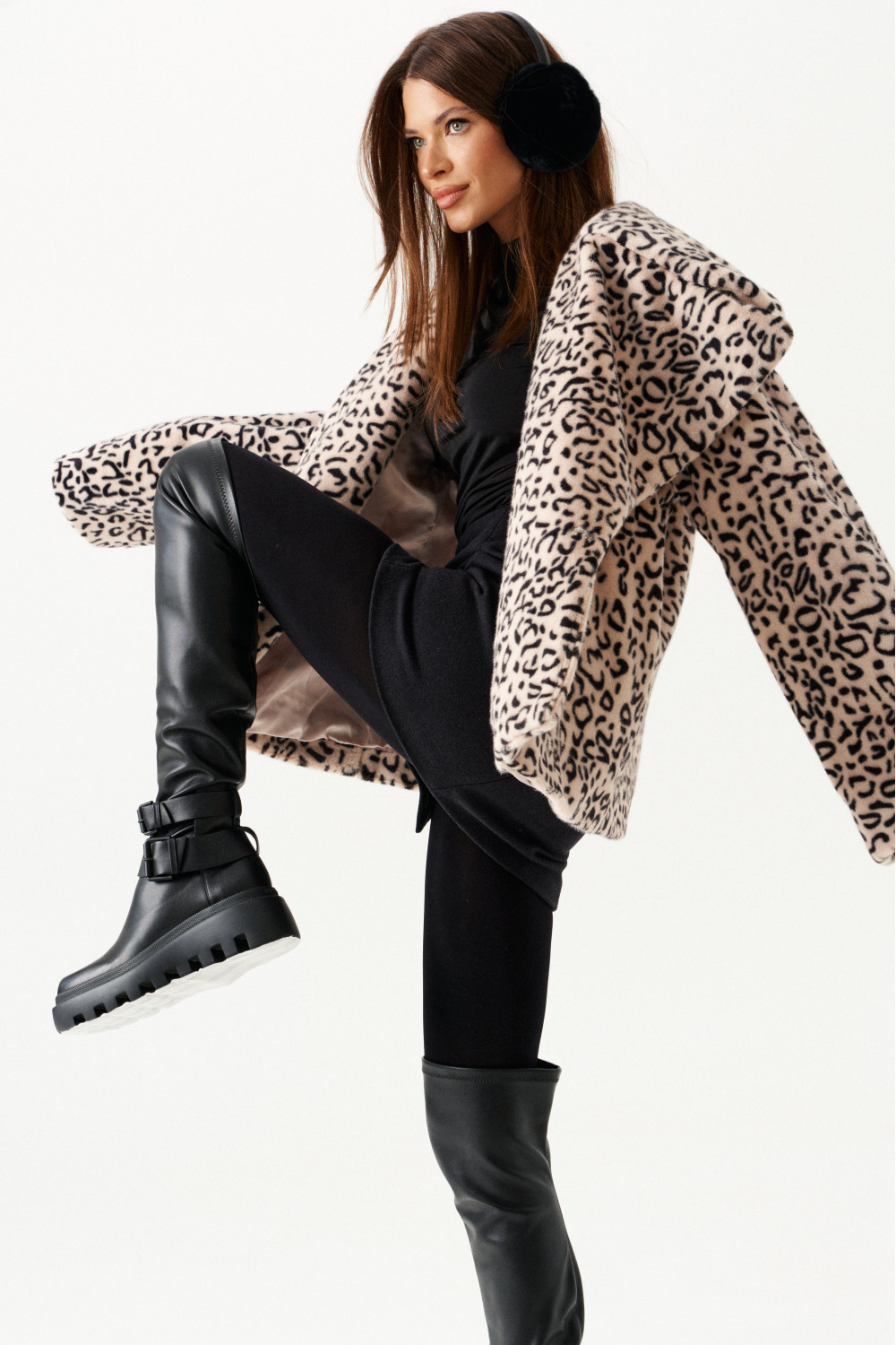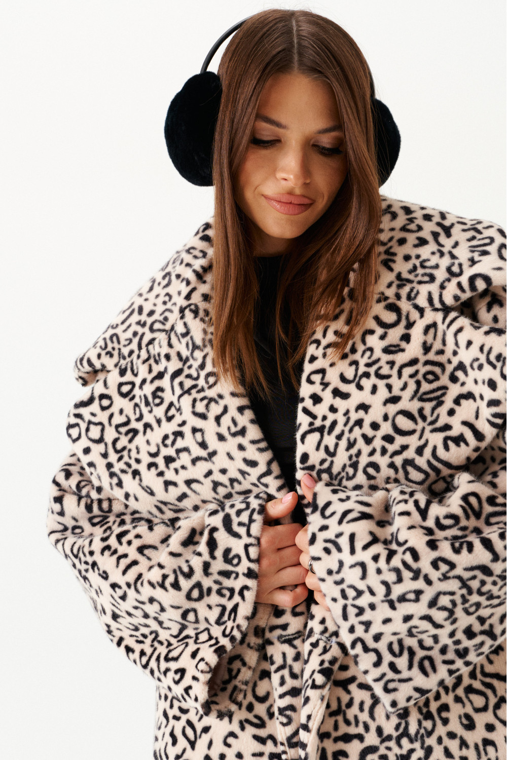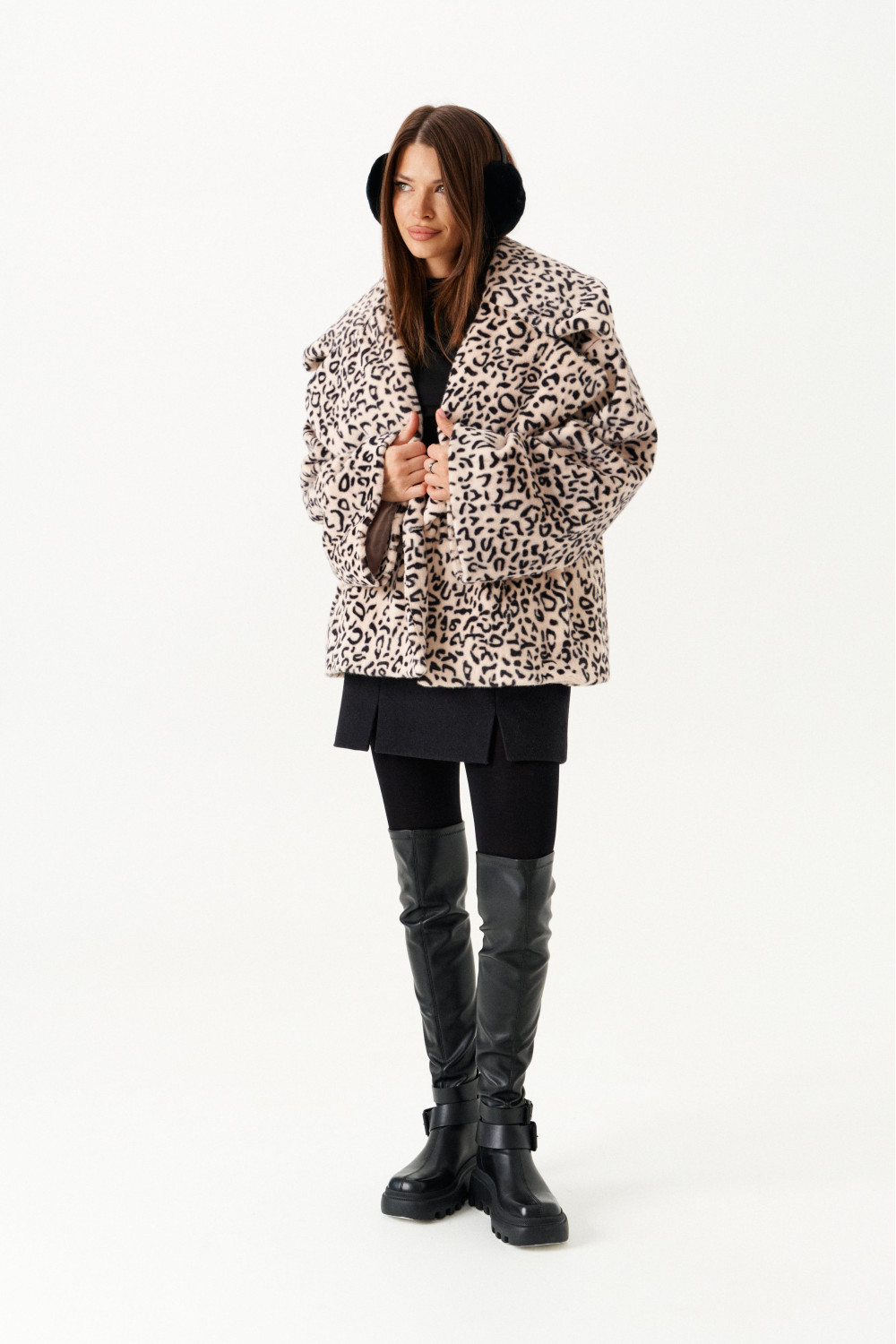 Полупальто из искусственного меха на трикотажной основе, прямого силуэта, свободное, с центральной двубортной застежкой на петли и пуговицы, отложным воротником с лацканами, на подкладке. Спинка цельная. В боковых швах расположены карманы. Рукав втачной, широкий, длинный.