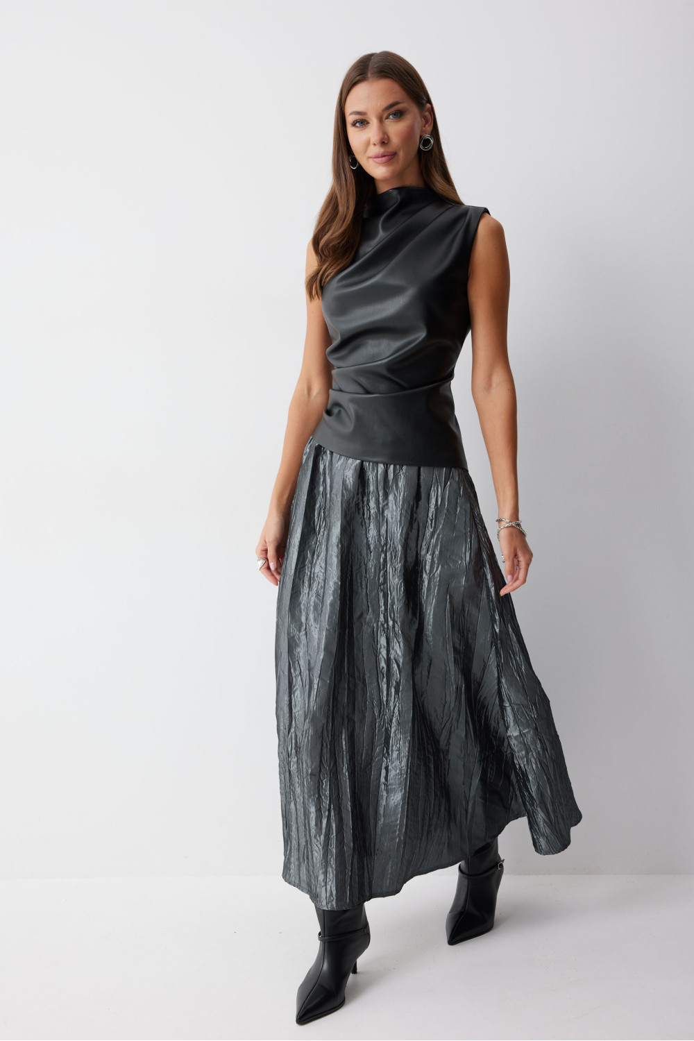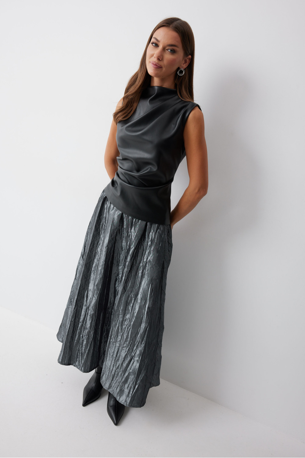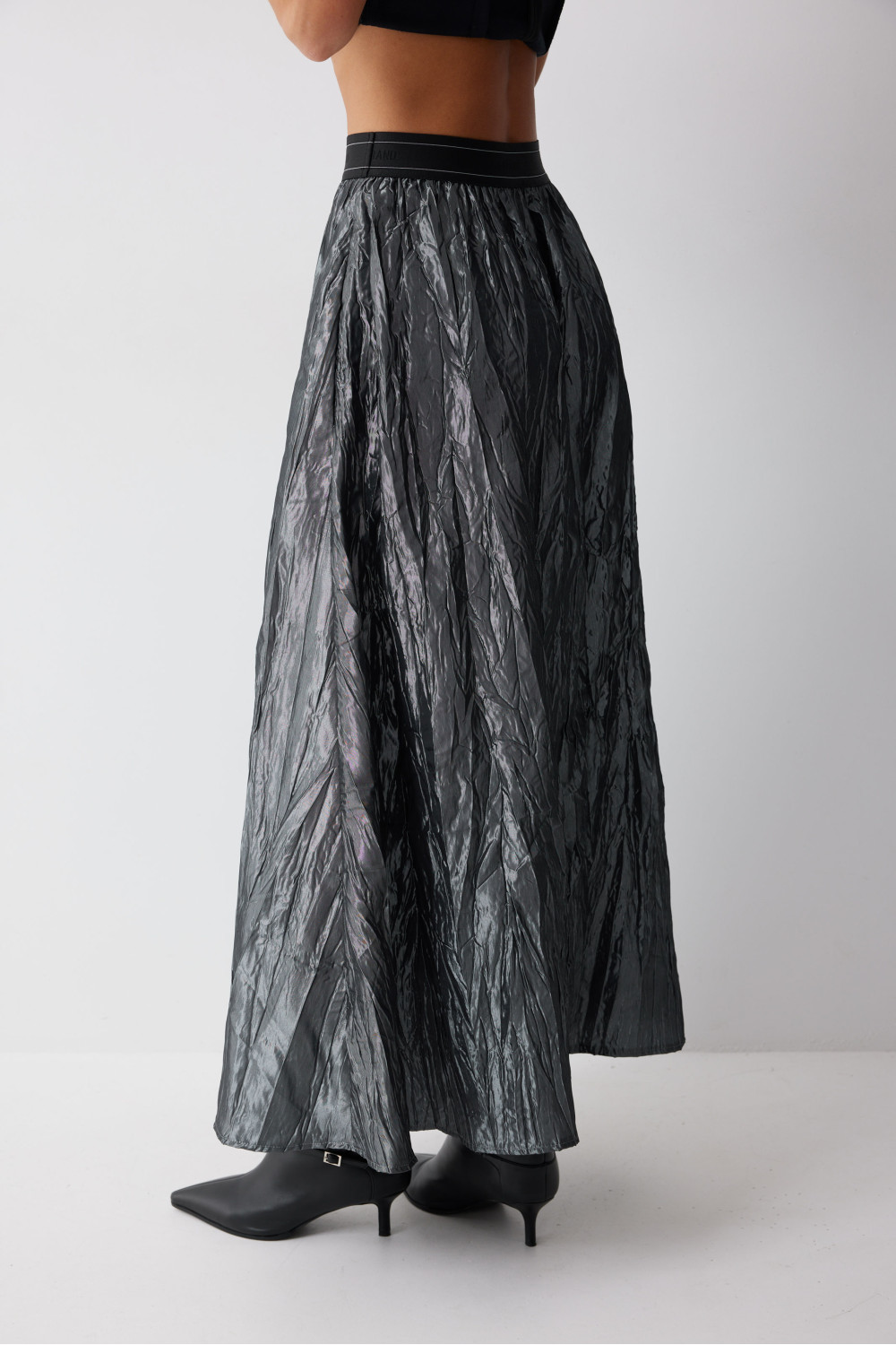 Юбка- полусолнце из жатой ткани, на притачном декоративном поясе (эластичной тесьме).